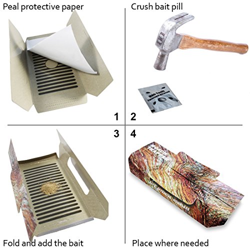 EFFECTIVE and practical way to exterminate cockroaches and other insects. Very easy to set up: fold the trap, peel off the glue protective paper and add food bait pellet (included in the package!)