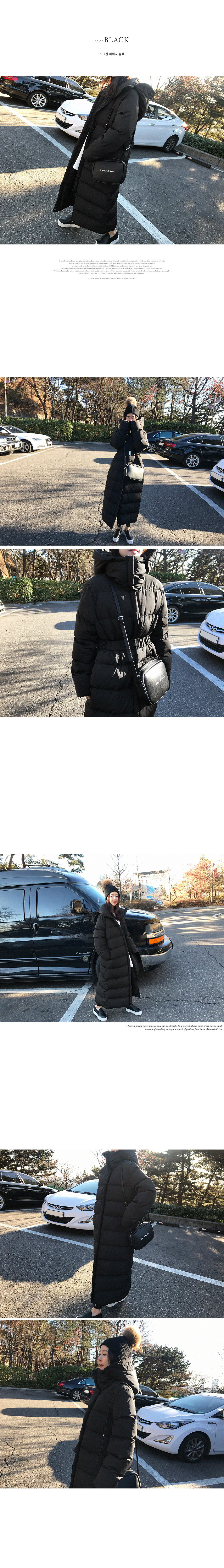 | 소재(Material) | 폴리(polyester/)100%안감폴리(polyester/)100%충전재(Filler/)오리털(duckdownyhair/)50%+웰론(wellon/)50% | |