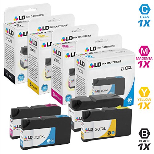 LD © Compatible Lexmark 200XL Set of 4 Ink Cartridges: 1 14L0174 Black, 1 14L0175 Cyan, 1 14L0176 Magenta, and 1 14L0177 Yellow for OfficeEdge Printers- Pro4000, Pro5500, Pro5500t