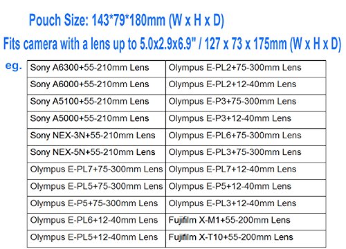OC-S3BK Mirrorless Camera Pouch for Sony A6000 A5000 A5100 A6300 with 55-210mm Lens & Olympus E-PL7 E-PL6 E-PL5 E-P5 E-P3 with 12-40mm Lens