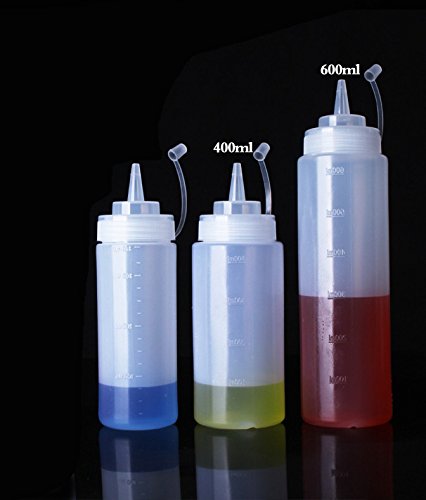 2PCSl Empty Clear White Refillable Plastic Squeeze Sauce Condiment Bottles Container Seasoning Dispenser for Ketchup Mustard Sauce Vinegar Cream Honey Salad Dressing (600ml/ 21oz)