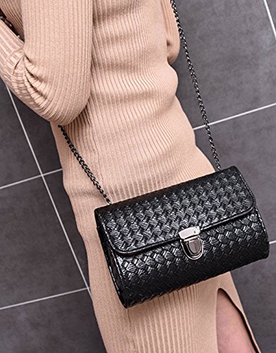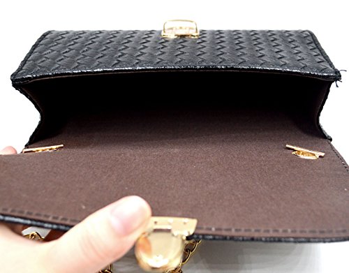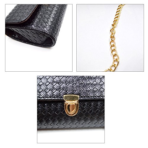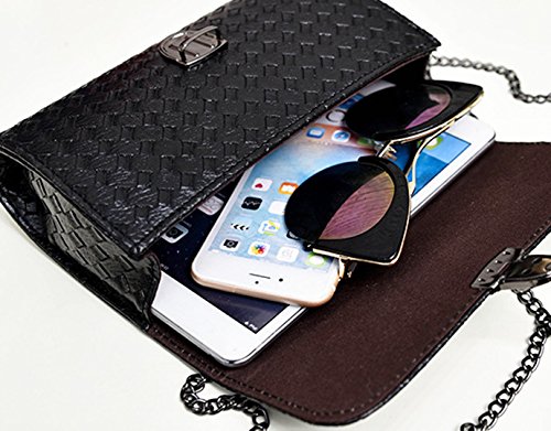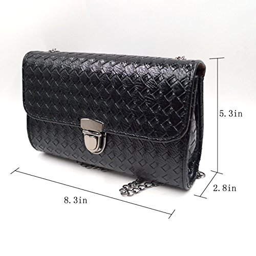 Made of high quality PU leather; very glossy, comfortable and durable to use. Unique design looks so unique, fashionable and stylish, dresses up you beautiful and full of personality charm. Chain shoulder strap makes it so convenient and portable to carry as your pleasure. Cover with magnetic lock is convenient to put in or take out something, also adds the security of your stuffs. Perfect size can hold cosmetics, wallet, pens and pencils, cellphone and other stuffs. Ideal for beach, shopping, dating, holidays and travel as handbag, clutch, cross-body bag and shoulder bag.