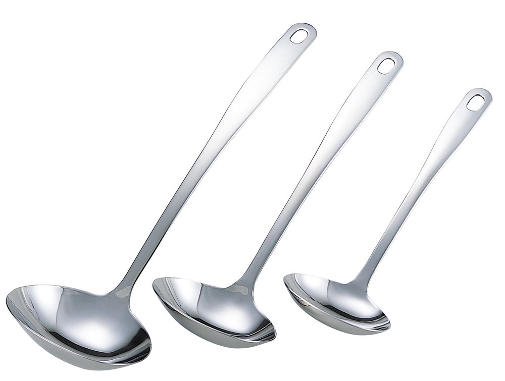 サイズ:プチ/皿部約7.1×6×全長21.8cm、中/皿部約8.2×6.7×全長25.6cm、大/皿部約9.2×7.9×全長30cm 本体重量:プチ/約60g、中/約80g、大/約100g 素材・材質:18-8ステンレス 生産国:日本 満水容量:プチ/約30ml、中/約50ml、大/約75ml セット内