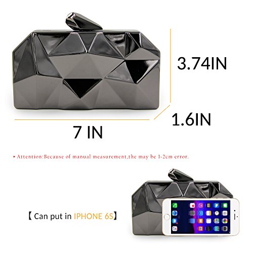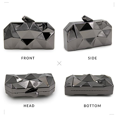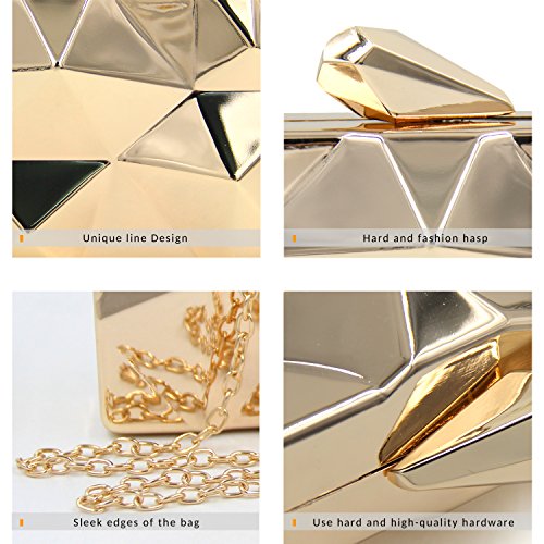 -. Feature : [ Feature ] Simple design, the surface is a geometry triangular shape, the hasp is irregular geometry shape. The stylish feature made you 100% attracts lots of admiring glances. / [ Material ] The entire structure is made of superior hardware frame construction, the lining is made of PU, which feels soft and comfortable. / [ Two Ways To Carry ] The removable chain-strap for you to choose hold it in hand or on the shoulder. The proper chain length also can be to cross your body. / [ Protection ] Covered a dust bag to protect that avoid being scratched and keep it shine. / [ Occasion ] Stylish, leisurely design can be used as a daily clutch when you're out of the street. Exquisite shapes can be used as evening bags when you're partying with your family and friends
