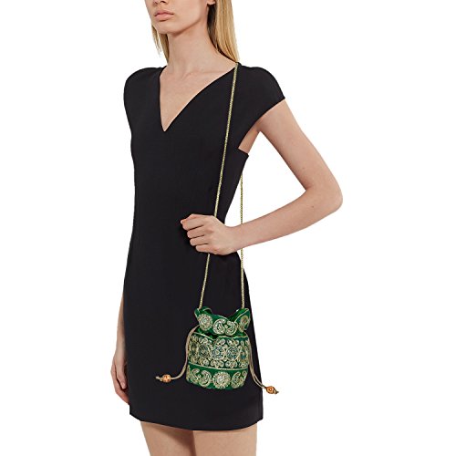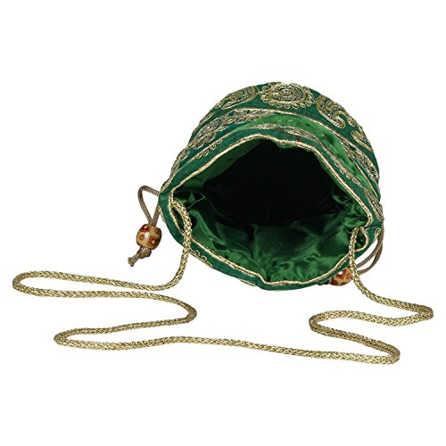 -. Feature : Attractive Potli Bag with Drawstaring Closure and Golden Handicraft Thread work done all over bag. / Dimensions: 7.5 in. x 7.0 in.Strap Down-24 inch.WASH CARE;-DRY CLEAN ONLY. / The Stylish Potli will definitely make you look trendy. The design of closing is unique. It has enough space to keep things organized.Light Weight Traditional Potli Bag ia an unique Pattern Birthday Gift for all ages Hand Crafted Wedding Potli, Ethnic Potli, Match With All Dresses, Elegant Look / This Potli Bag go well with both Indian and Western outfits and are superb for Wedding and Festive parties wherein it will perfectely go with your Designer Saree , Lehnga or any other dress / Being lightweight, these bags can easily be wrapped around the wrist using their drawstrings. You can easily keep your personal belongings like Money , iPhones , Cosmetics in that.