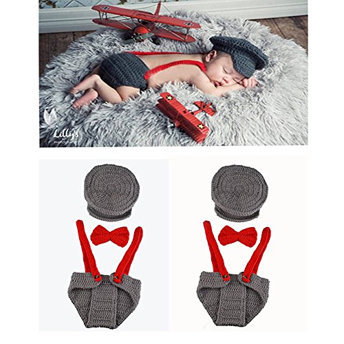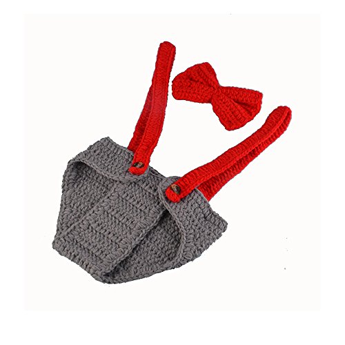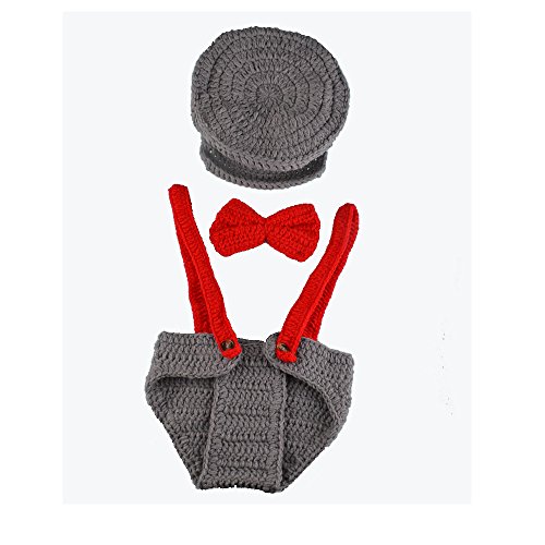 Yarra Modes Newborn Baby Boy Costume Crochet Outfits Photography Props Cap Beanie with Suspenders Bowtie Diaper (0- 4months)