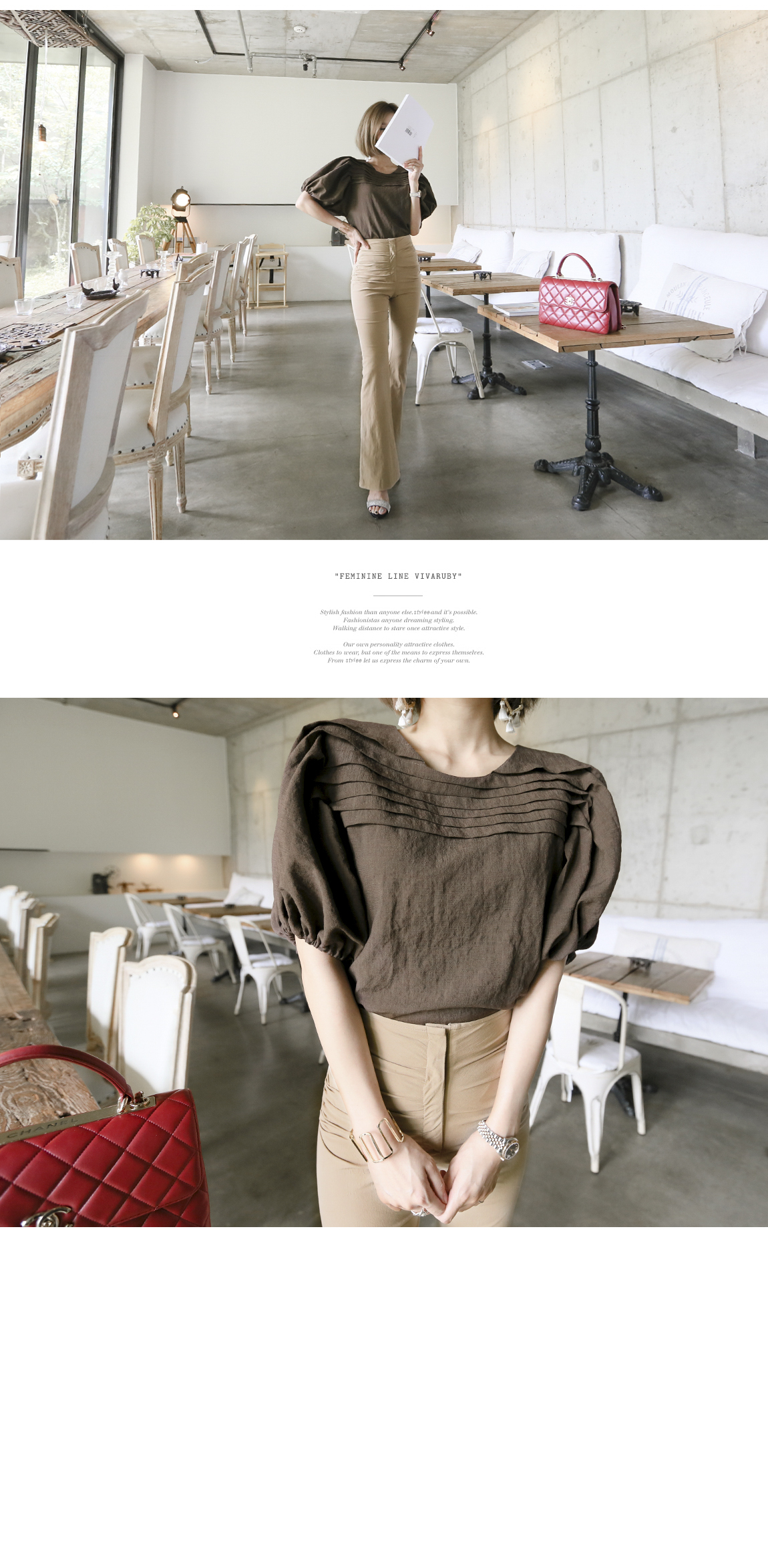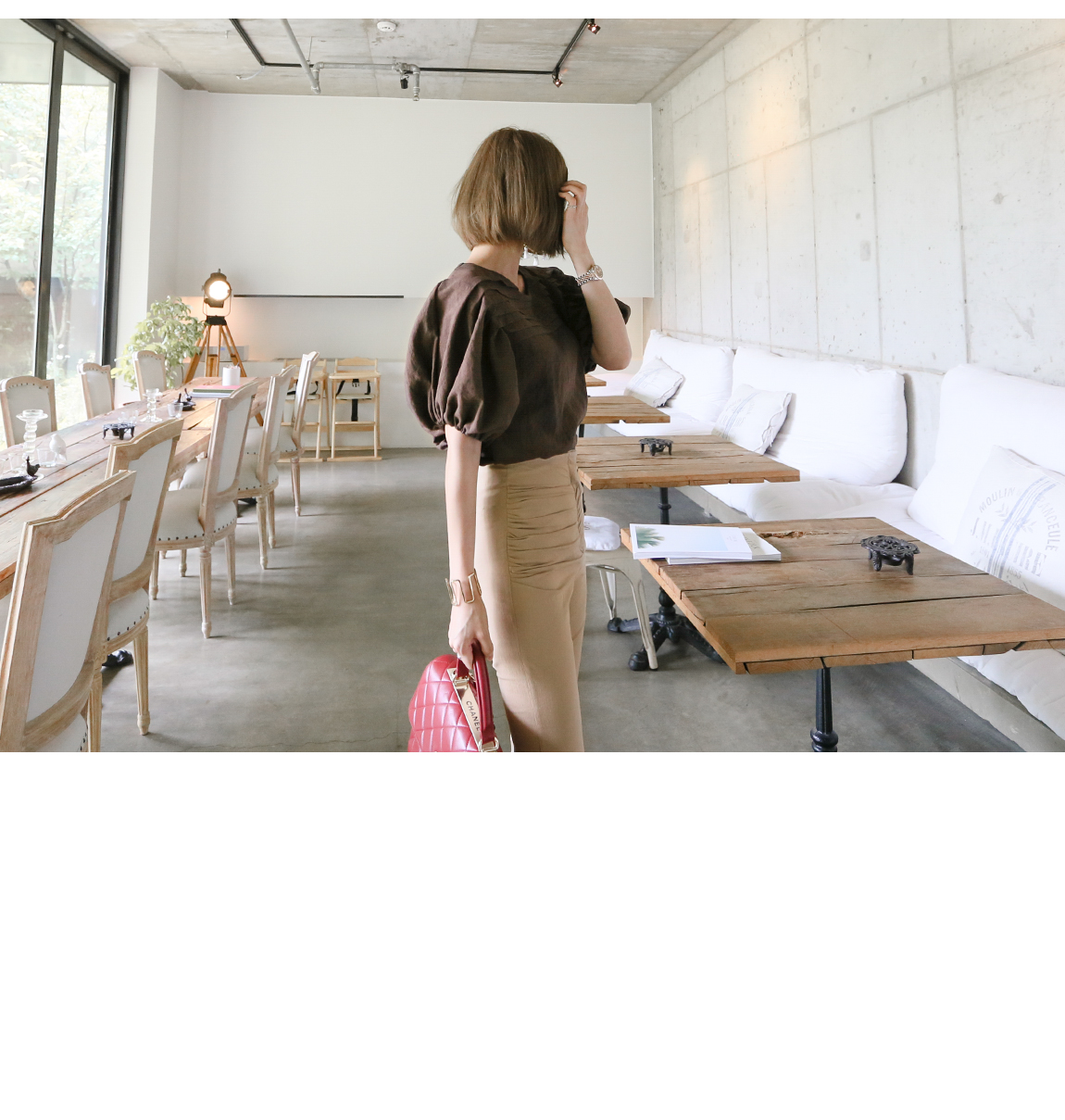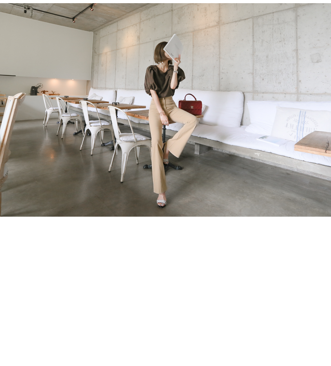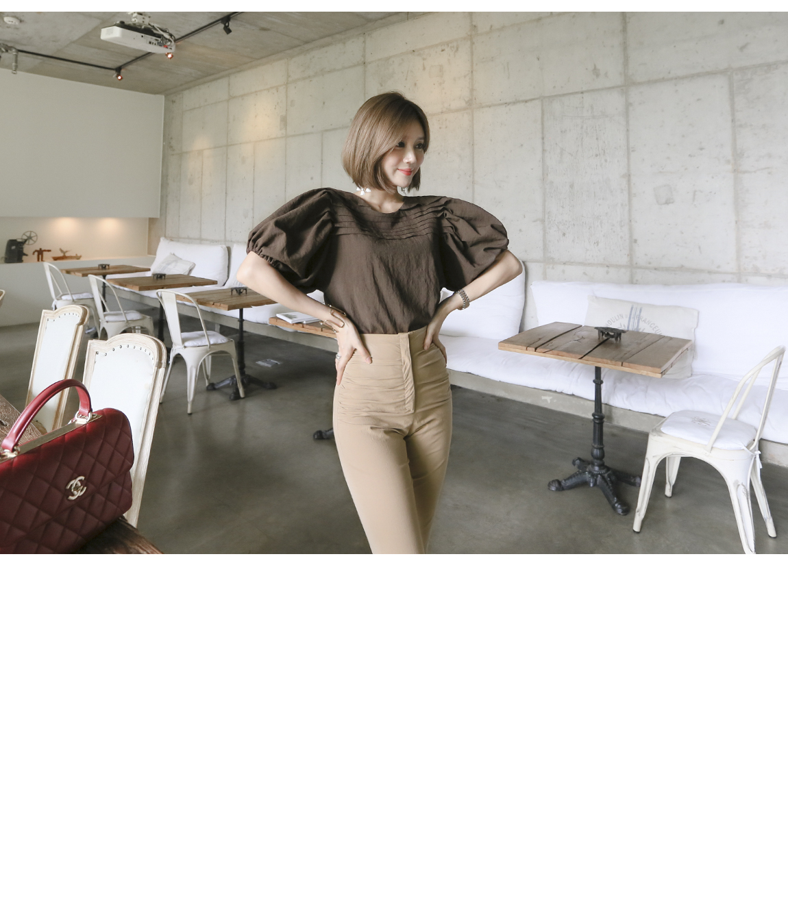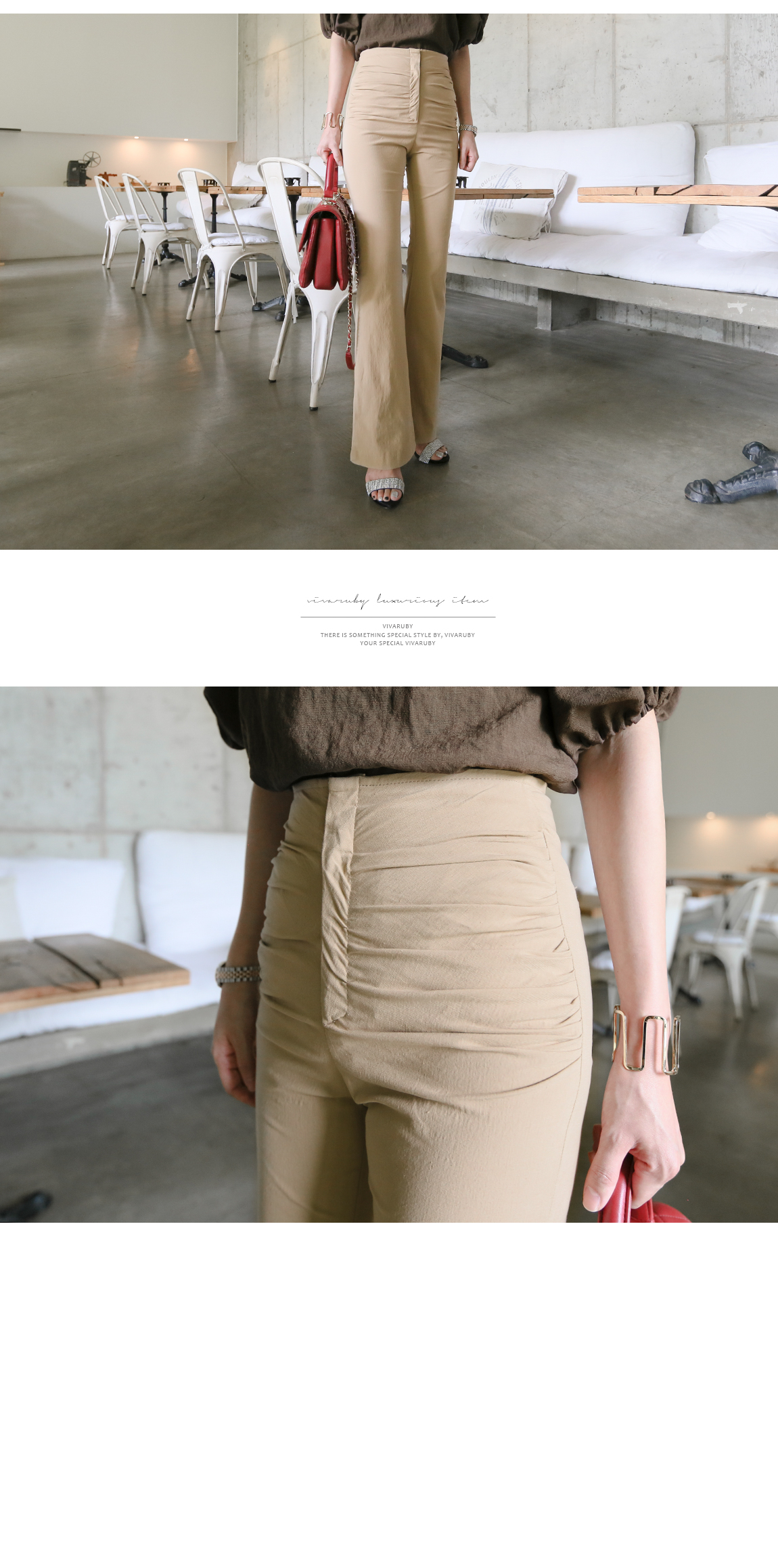 マッチしてディテールを強調したスタイリングを推薦するハイウェストの商品として