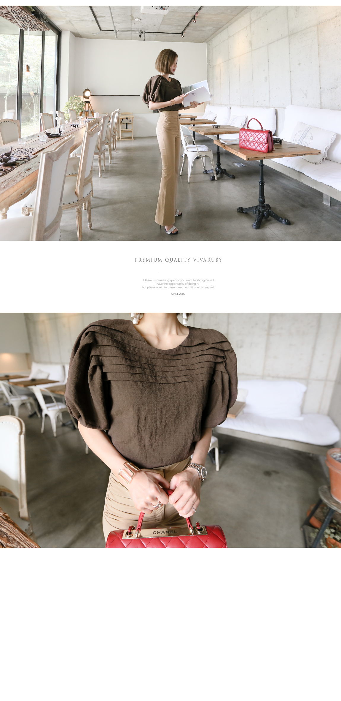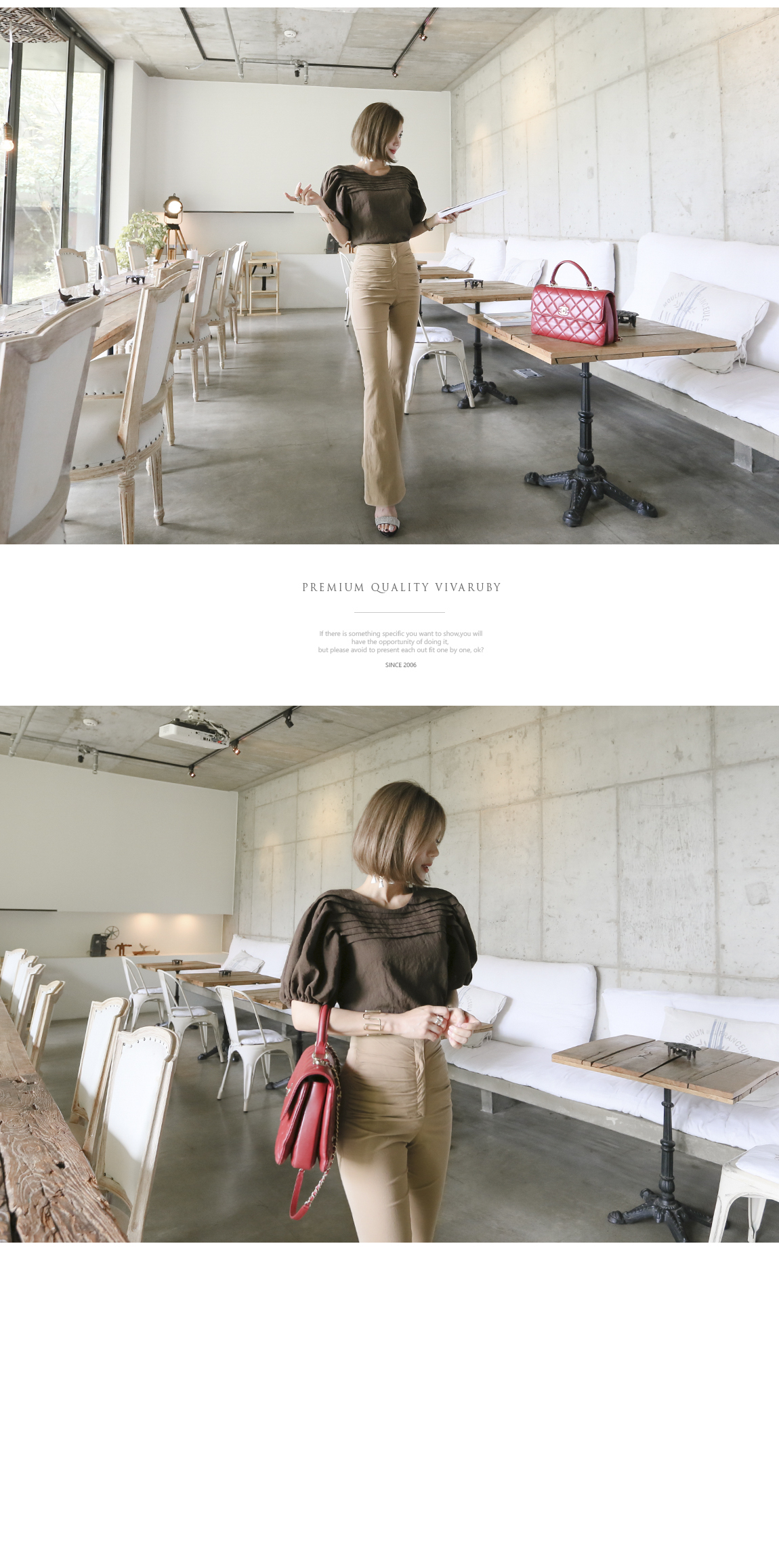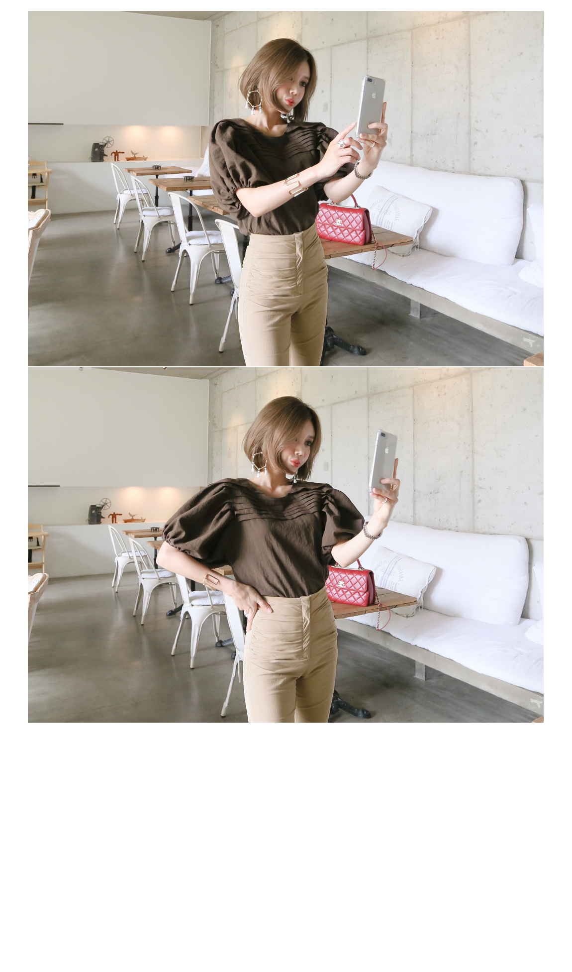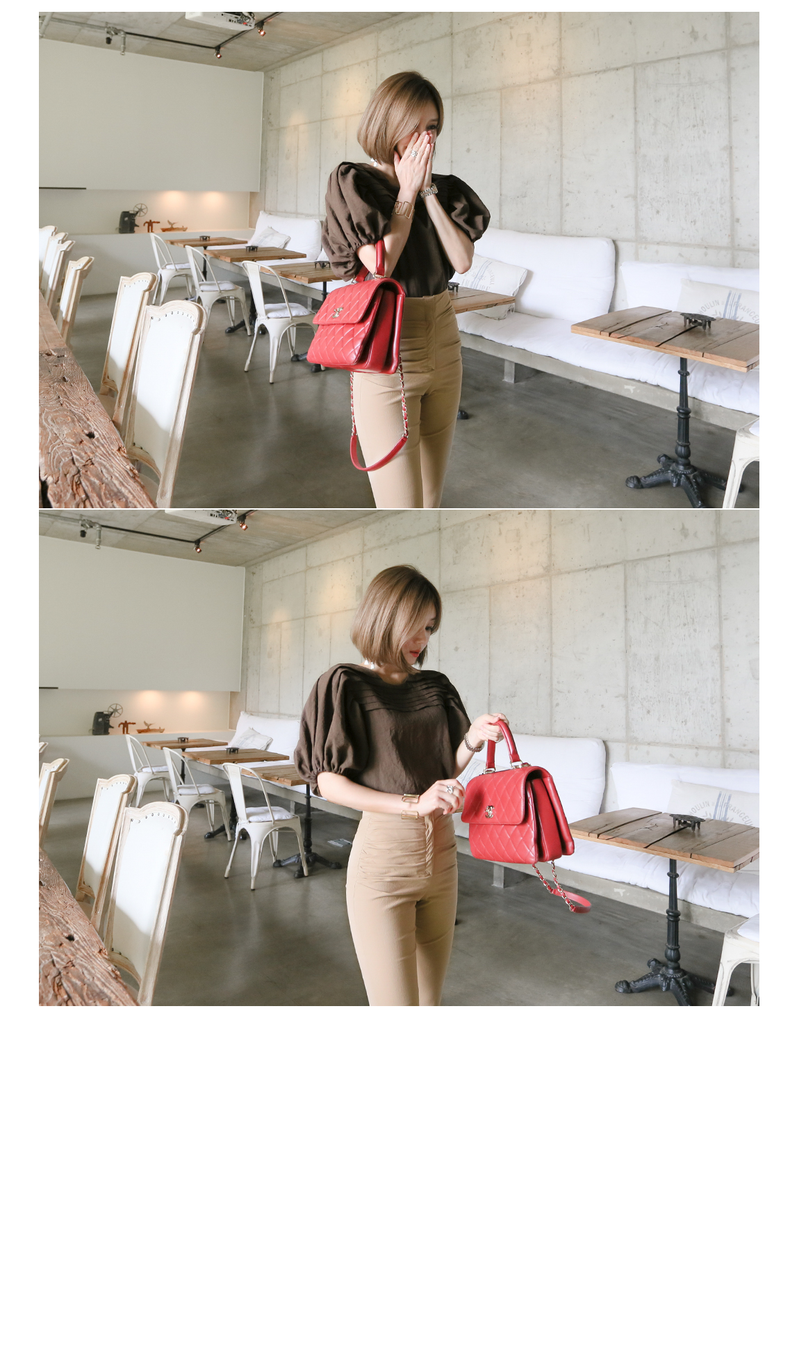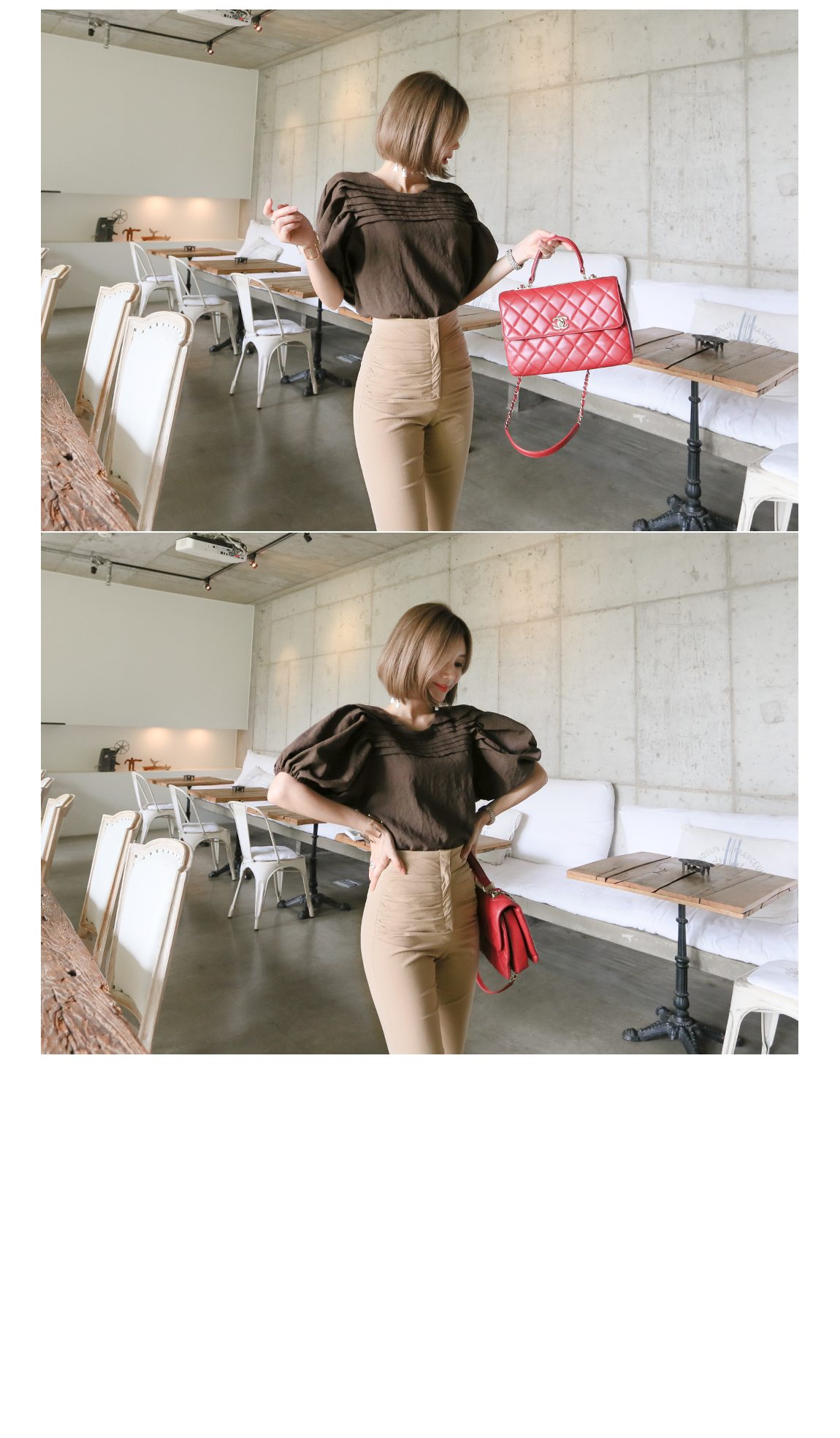 マッチしてディテールを強調したスタイリングを推薦するハイウェストの商品として
