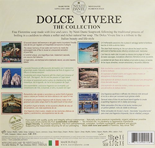 Nesti Dante DolCe Vivere Florentine Soap Collection. 6 Soaps each 150g Free From Pettrochemicals, Synthetic Surfacantans & Sulphates. Vegan Friendly