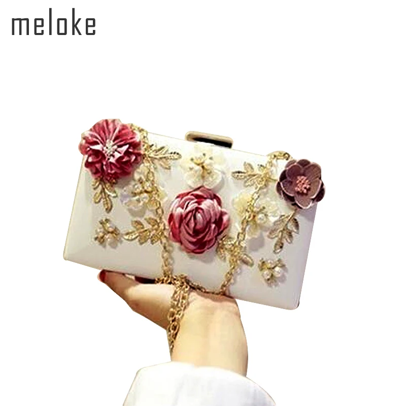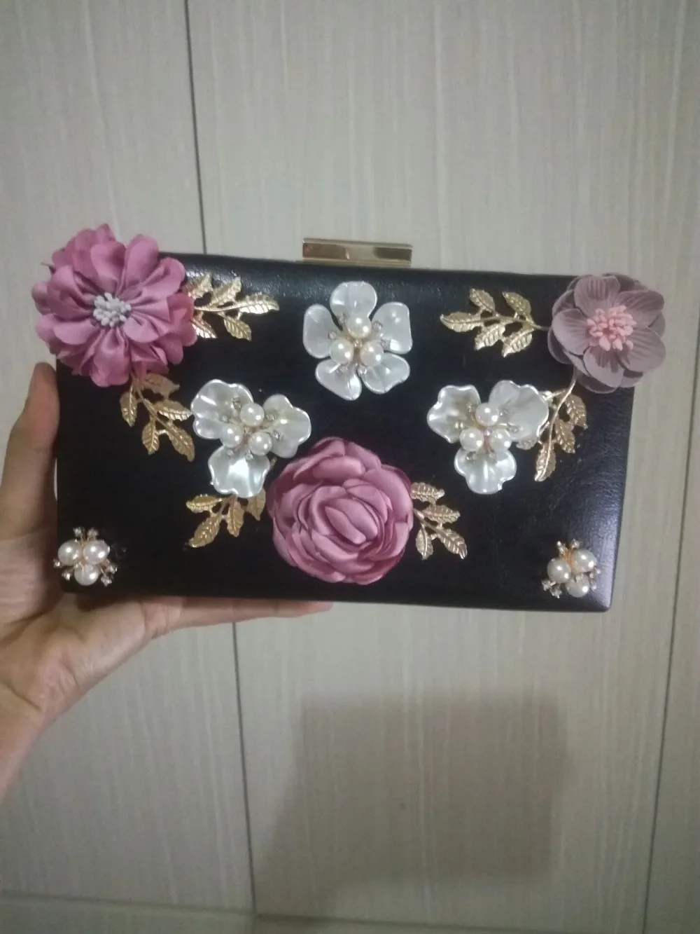 evening bags material :3d flower silk leather metal