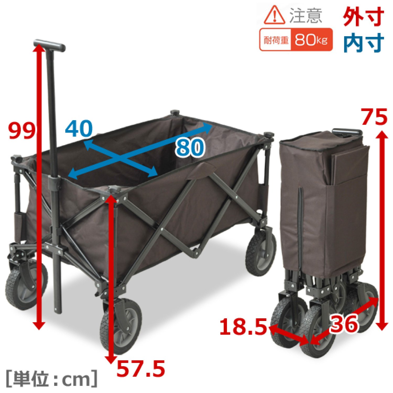 Folding size: Width 18.5 × depth 36 × height 75 cm