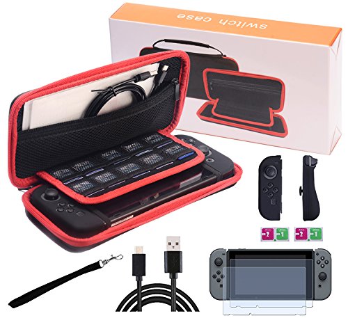 -. Title : Six-in-Oneプロフェッショナル・アクセサリーのニンテンドースイッチ EVAキャリングケース ANTI-BLUEライト強化ガラススクリー保護フイルム 充電ケーブル シリコーンJoy-Con クリアカバーに付き