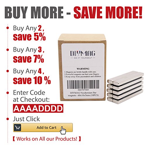 Powerful Neodymium Bar Magnets, Rare-Earth Metal Neodymium Magnet, N45, Incredibly Strong 33+ LB Strength - 60 x 10 x 5 mm, Pack of 10