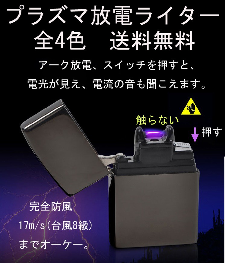 男のおしゃれ ジッポ風電子ライターセット内容:本体、金属専用ケース、充電ケーブルアーク放電式でタバコに火をつけるライターです!充電時間は約1-2時間。約100から200回使用できます。8級の台風でも使えます、アウトドアにも最適!注意:絶対直接に電流を触らないでください。人に向けて使わないでください。キーワードzippo ジッポ風ライター 電子ライター 防風 アウトドア メンズ プレゼント おしゃれ 最新商品 アーク プラズマ NEW USB ARCプラズマライター USBライター
