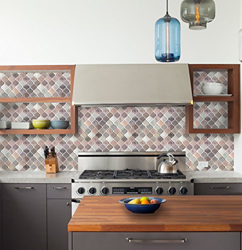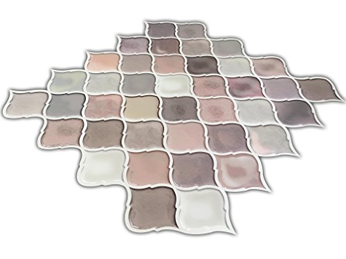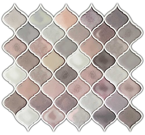 Pink Grey Arabesque Peel and stick Tile Backsplash kitchen bathroom decorative tiles 10"x11"(6-Pack)