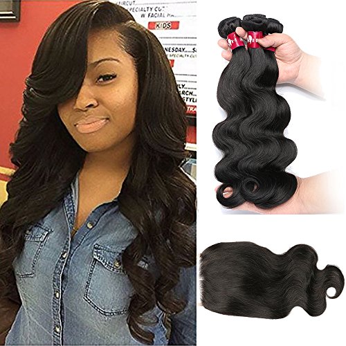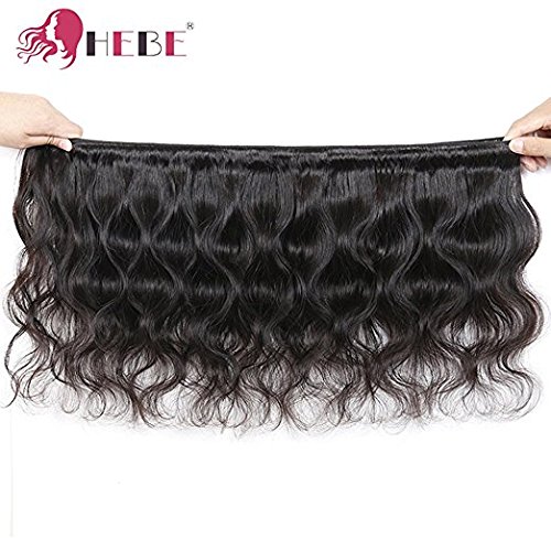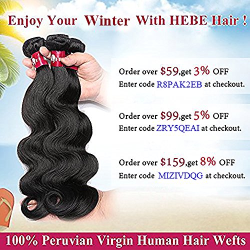 HEBE Peruvian Virgin Hair 3 Bundles With Closure 7A Peruvian Body Wave With Closure Free Part Unprocessed Virgin Human Hair Extension Natural Color...