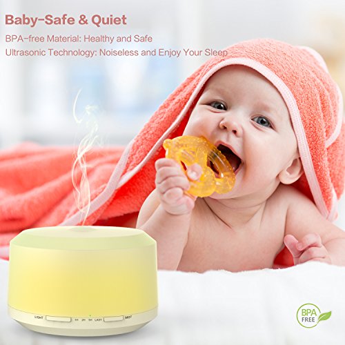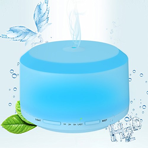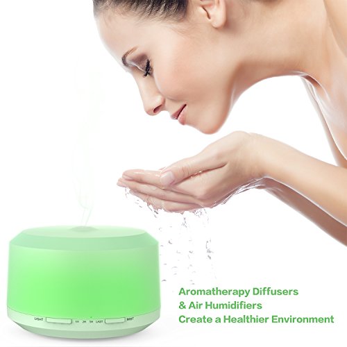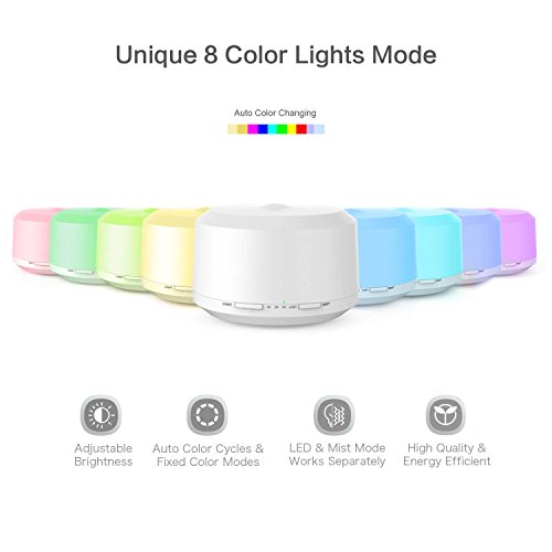 Essential Oil Diffuser, 450mL Aromatherapy Diffusers for Essential Oils Ultrasonic Air Humidifier - 8 LED Night Light with Waterless Shut-off and Timers