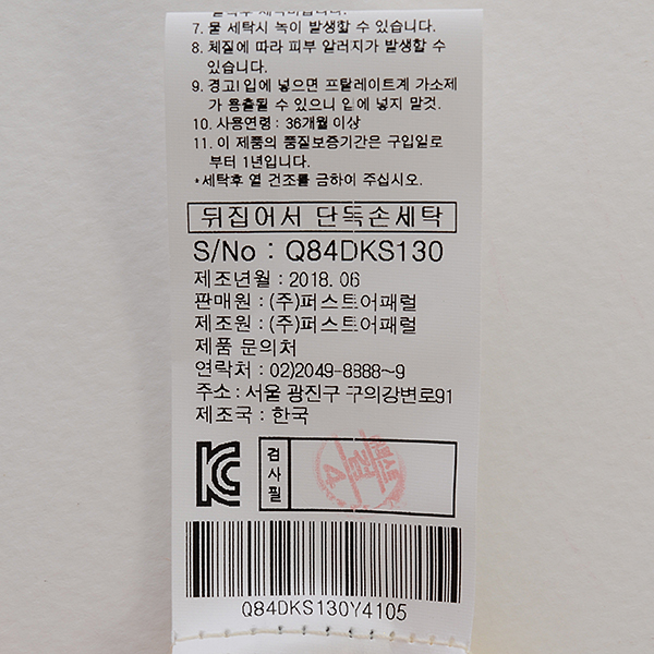 제조자 : 퍼스트어패럴