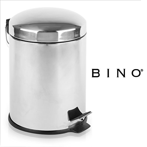 -. Binding : Kitchen -. Brand : BINO -. Feature : SILENT LID - BINO'S silent lid design features an advanced hydraulic buffer which results in a seamless, smooth and quiet slow closing lid / REMOVABLE INNER BUCKET - BINO's trash cans feature a removable inner bucket with a carrying handle that makes trash disposal easy / HANDS FREE - BINO's hands-free design includes a durable and strong foot pedal engineered to last. Hands-free operation helps prevent the spread of germs / SMALL FOOTP.R.INT - Perfect for smaller spaces such as bathrooms, laundry rooms, under desks or wherever space is limited / HIGH QUALITY STAINLESS STEEL- BINO's trash cans are made from premium grade stainless steel in colors beyond the classic stainless steel. BINO's proP.R.Iety matte finish results in a stylish and contemporary design while staying rust and fingerP.R.Int proof. -. IsAutographed : 0 -. Label : BINO -. Manufacturer : BINO -. ProductGroup : Home -. ProductTypeName : HOME -. Publisher : BINO -. Studio : BINO -. Title : BINO Stainless Steel 1.3 Gallon / 5 Liter Round Step Trash Can