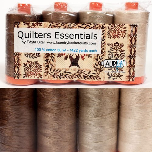 Aurifil Thread 4 large (1422 yard) Spools 50wt Cotton QUILTERS ESSENTIALS Neutrals By Edyta Sitar