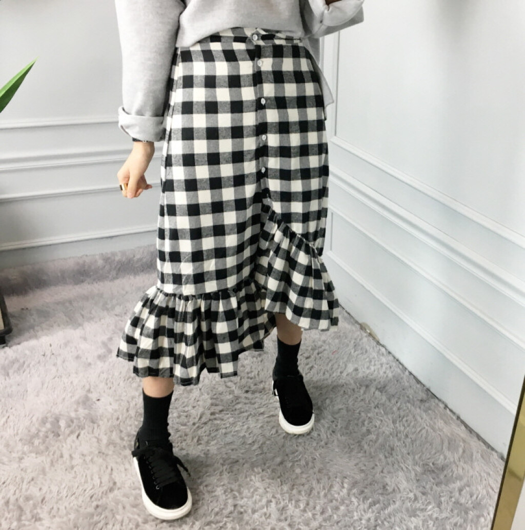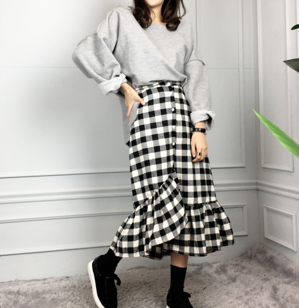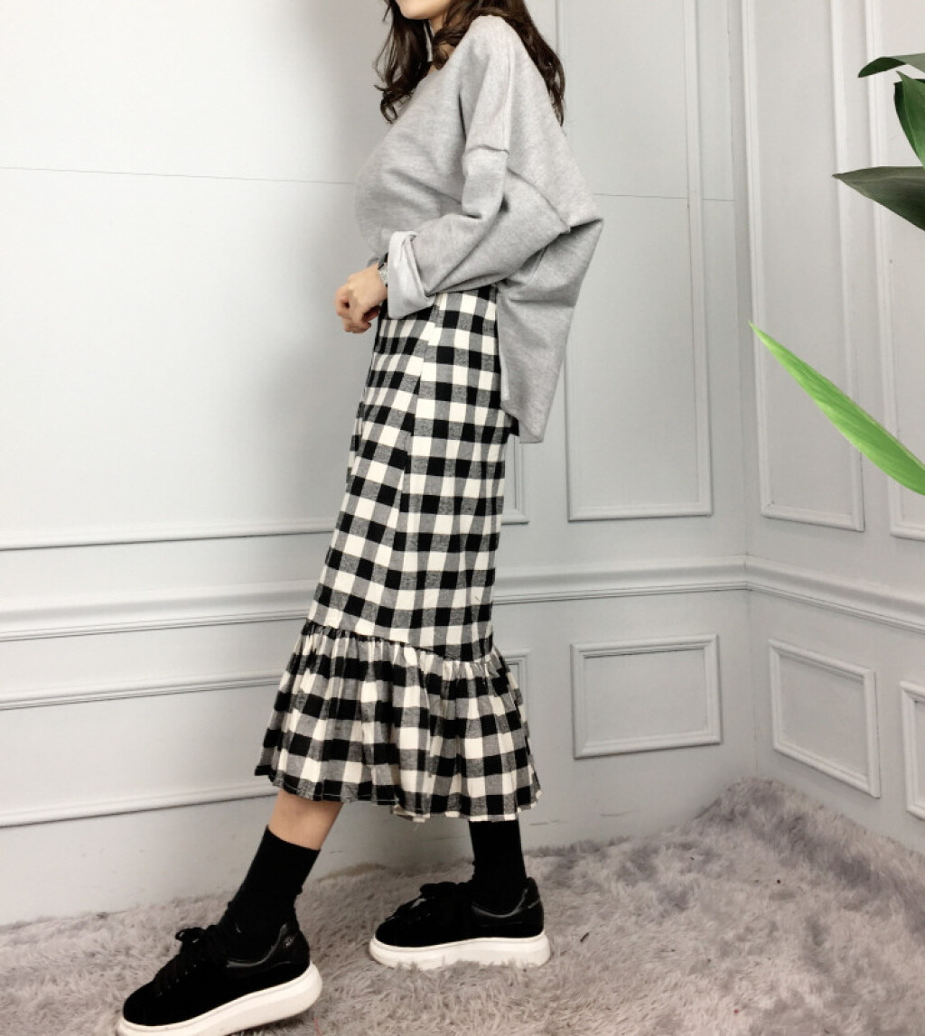 밴딩 머메이드 체크 롱 커트 소개드려요:)