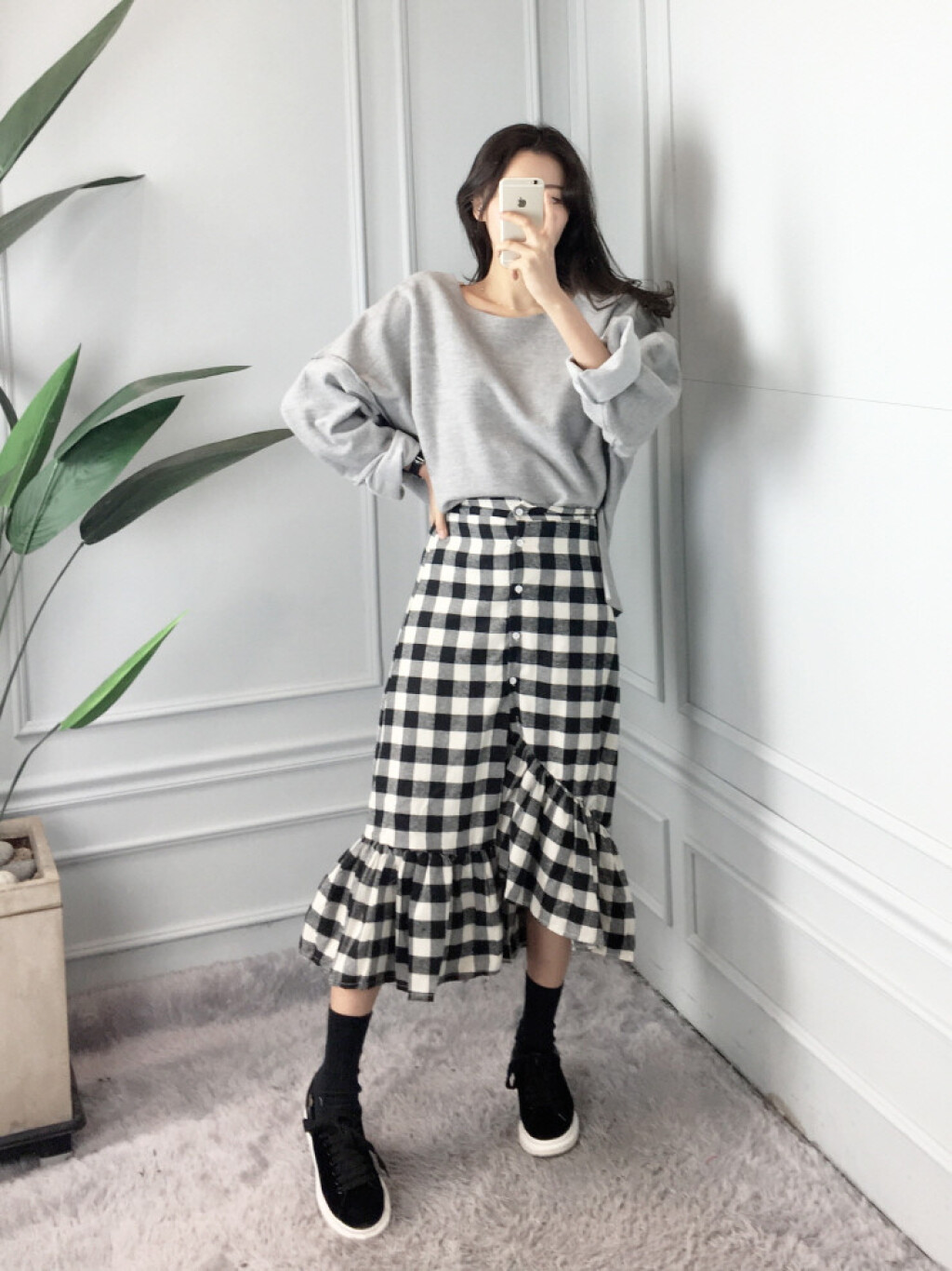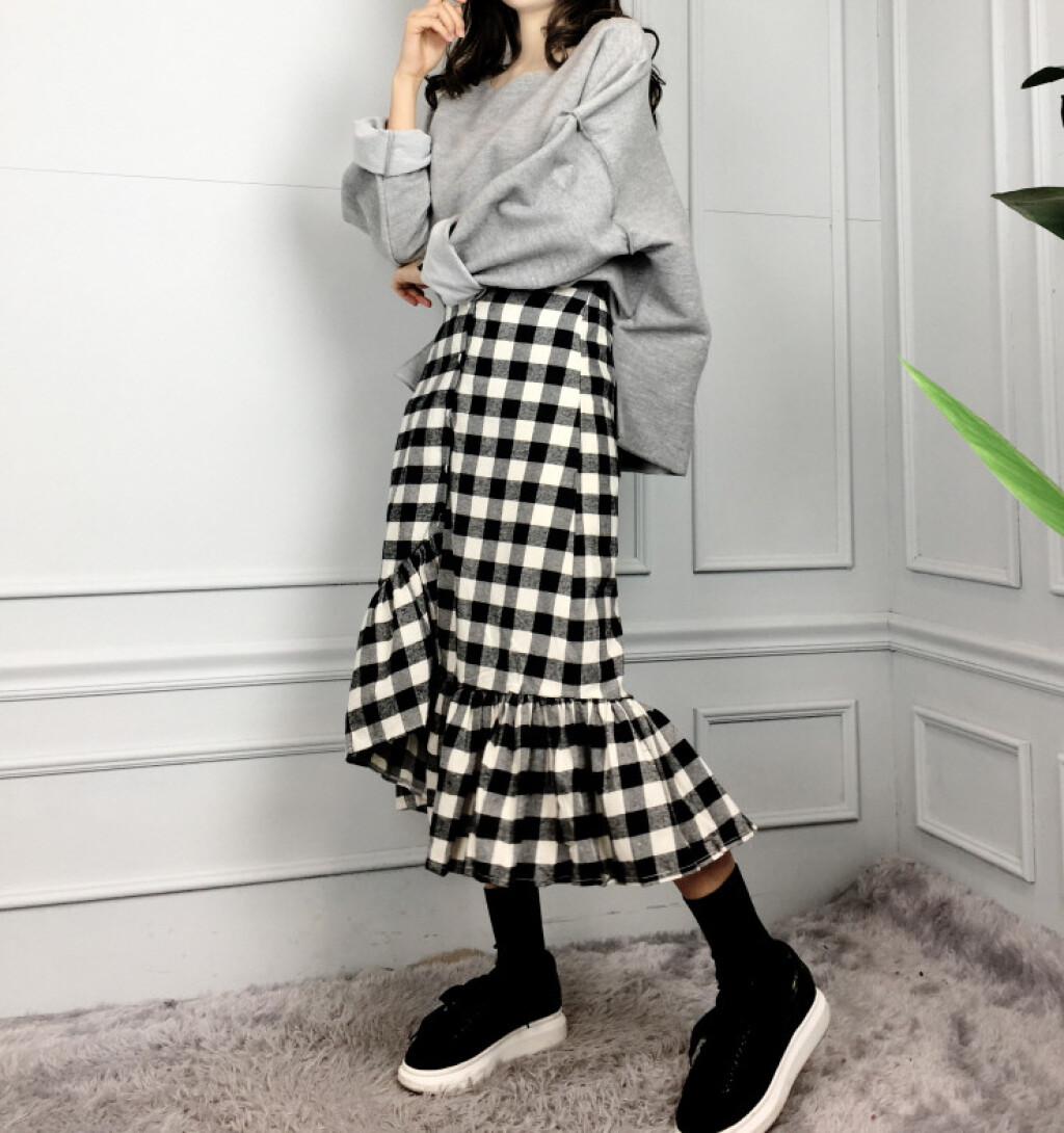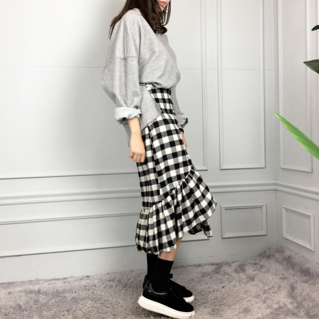 밴딩 머메이드 체크 롱 커트 소개드려요:)
