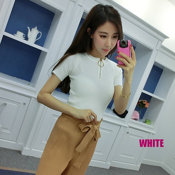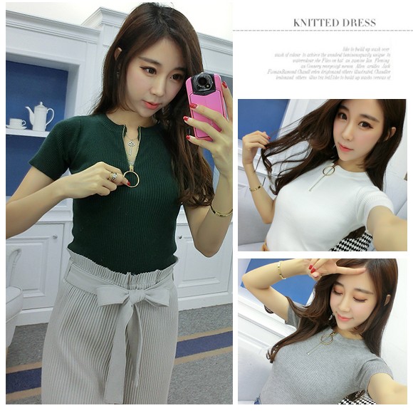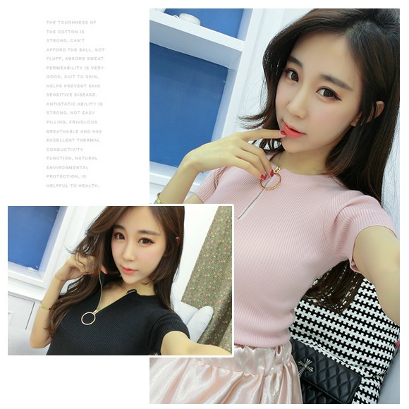 大人気★レディース用リブトップスです!ぴったりフィットするスリムなデザインでスタイルアップ効果バツグン&ハイウエストボトムスとの相性GOOD☆シンプルな無地のデザインに、胸元のジップがアクセントになってちょっぴりSEXY♪程よいハイネックなのでトレンド感もあって旬なコーディネートになること間違いなし♪【商品詳細】カラー:ブラック/ホワイト/グレー/ピンク/ダークグリーン肩幅:約30cm 袖丈:約17cm バスト:約75-80cm 総丈:約47cm素材:アクリル、ポリエステル