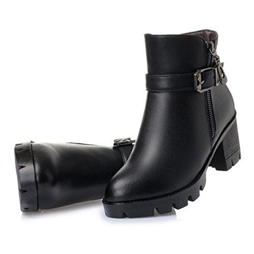 -. Title : 店舗]ショートブーツ レディース ボア 黒/ブラウン 22.5-26.5CM 大きいサイズ ヒールの高さ6センチ チャンキーヒール サイドジッパー 防寒靴 ママへ 高齢者靴 暖かい 軽量 滑り止め おしゃれ 疲れにくい もこもこ 冬 お出かけ