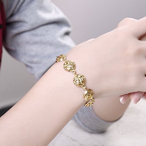 New Charm Gold Color Hollow Rose Flower Women Bracelet Stylish Hand Chain