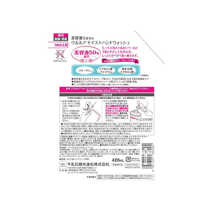 원본상품명: ウルルア モイストハンドウォッシュ 詰替用 420mL (??部外品)