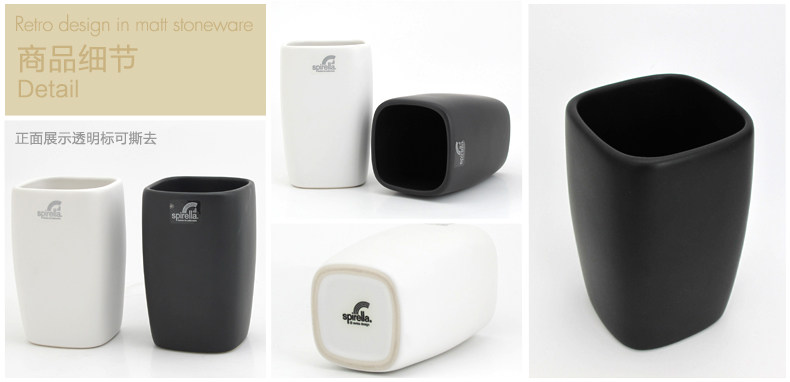 产品特点 –磨砂哑面陶瓷材质,质感细腻,高档; –哑面陶瓷方形外形,时尚简约;