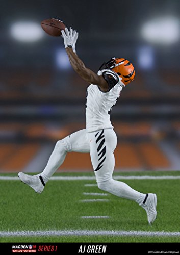 -. Binding : Toy -. Brand : McFarlane -. Color : White -. Department : unisex -. EAN : 0787926757224 -. Feature : Included with the new ea sports madden NFL 18 ultimate team action figures will be a code redeemable for 7 pro packs that will help madden NFL ultimate team players ignite their Squad / Aj green is featured in the team's white color Rush uniform / Jersey color may vary as rare alternate version figure features green in the team's all black uniform / Figure stands approximately 7 inches tall / Figure is featured in window box collector packaging and includes a detailed base -. IsAdultProduct : 0 -. Label : McFarlane Toys -. Manufacturer : McFarlane Toys -. Model : 75722-4 -. MPN : 75722-4 -. NumberOfItems : 1 -. PackageQuantity : 1 -. PartNumber : 75722-4 -. ProductGroup : Toy -. ProductTypeName : TOYS_AND_GAMES -. Publisher : McFarlane Toys -. Studio : McFarlane Toys -. Title : McFarlane Toys EA Sports Madden NFL 18 Ultimate Team Series 1 AJ Green Cincinnati Bengals Action Figure -. UPC : 787926757224 -. Warranty : No Warranty