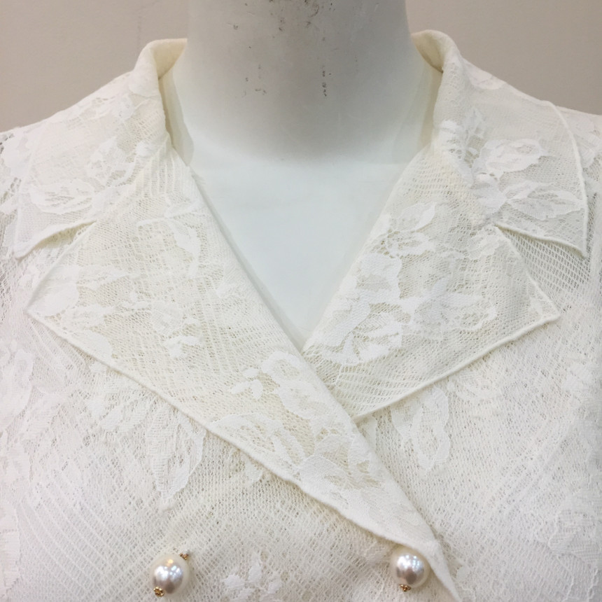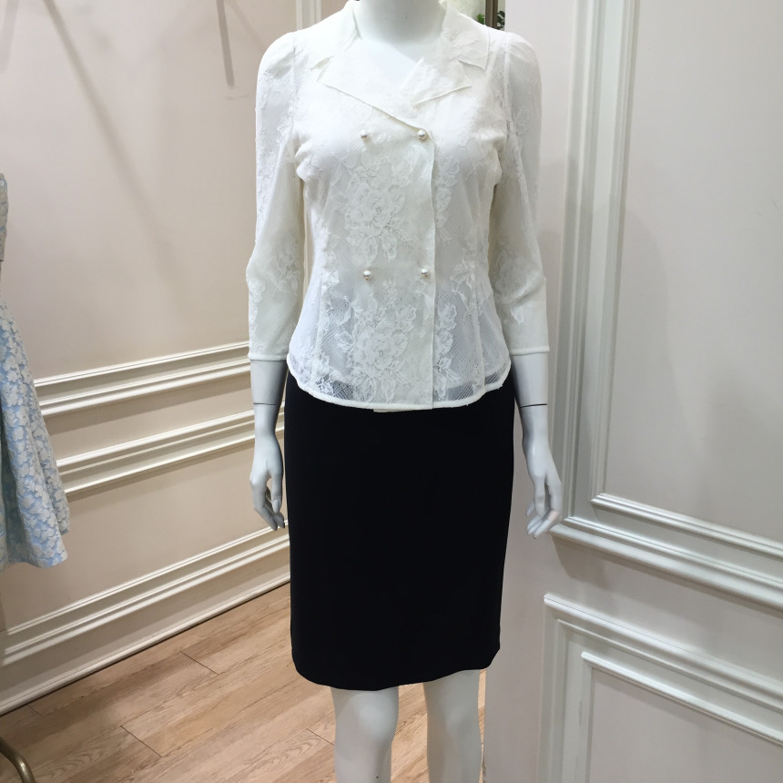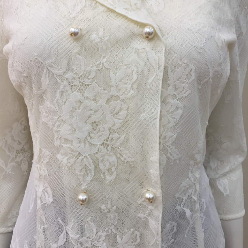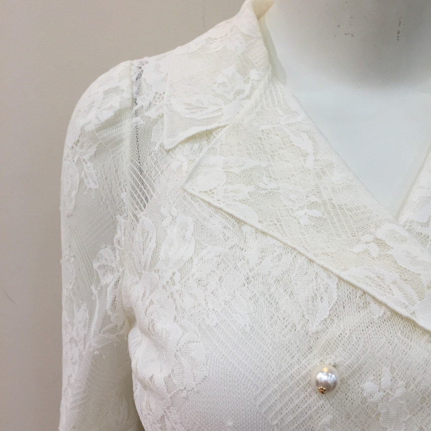 테일러드 칼라와 섬세한 레이스, 진주버튼으로 여성스러운 포인트를 주었습니다.