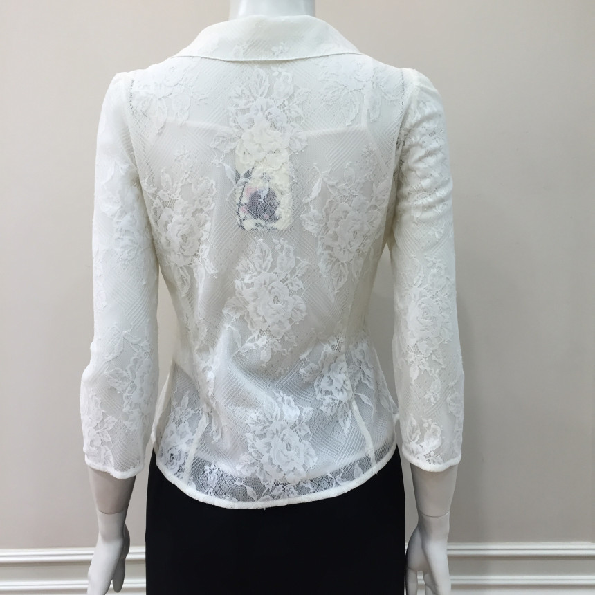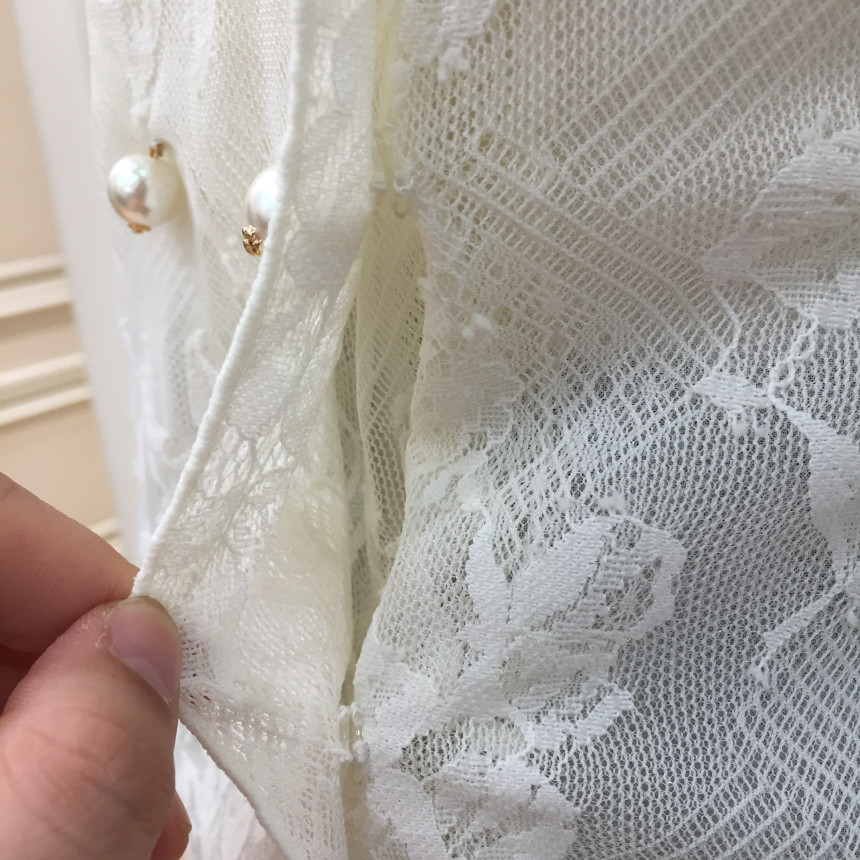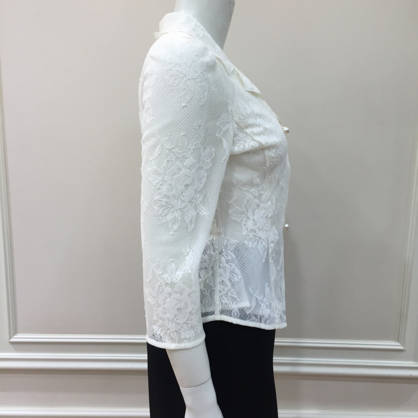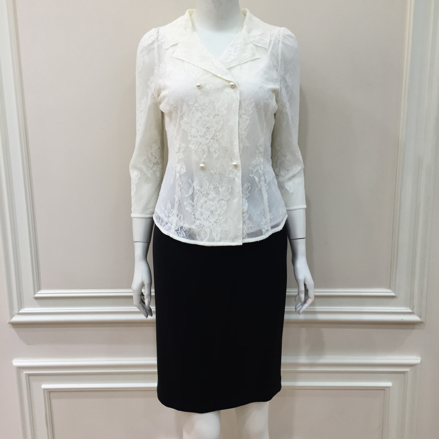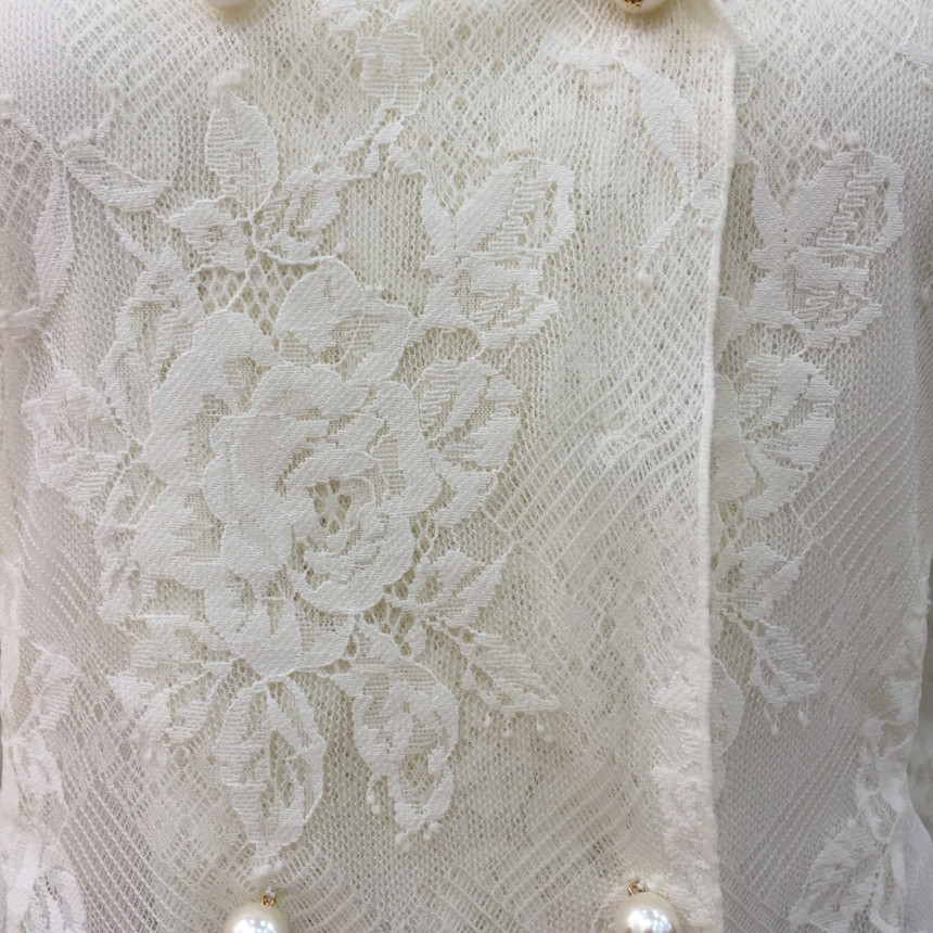 테일러드 칼라와 섬세한 레이스, 진주버튼으로 여성스러운 포인트를 주었습니다.