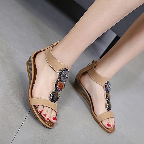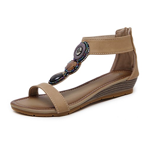 (GATUXUS)/Women's/Sandals/DIRECT FROM USA/GATUXUS Bohemia Women Ankle Strappy Across Peep Toes Zipped Sandals Ladies Casual Beach Shoes