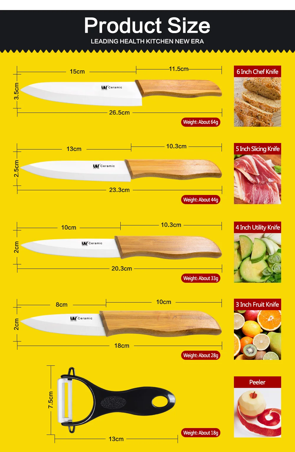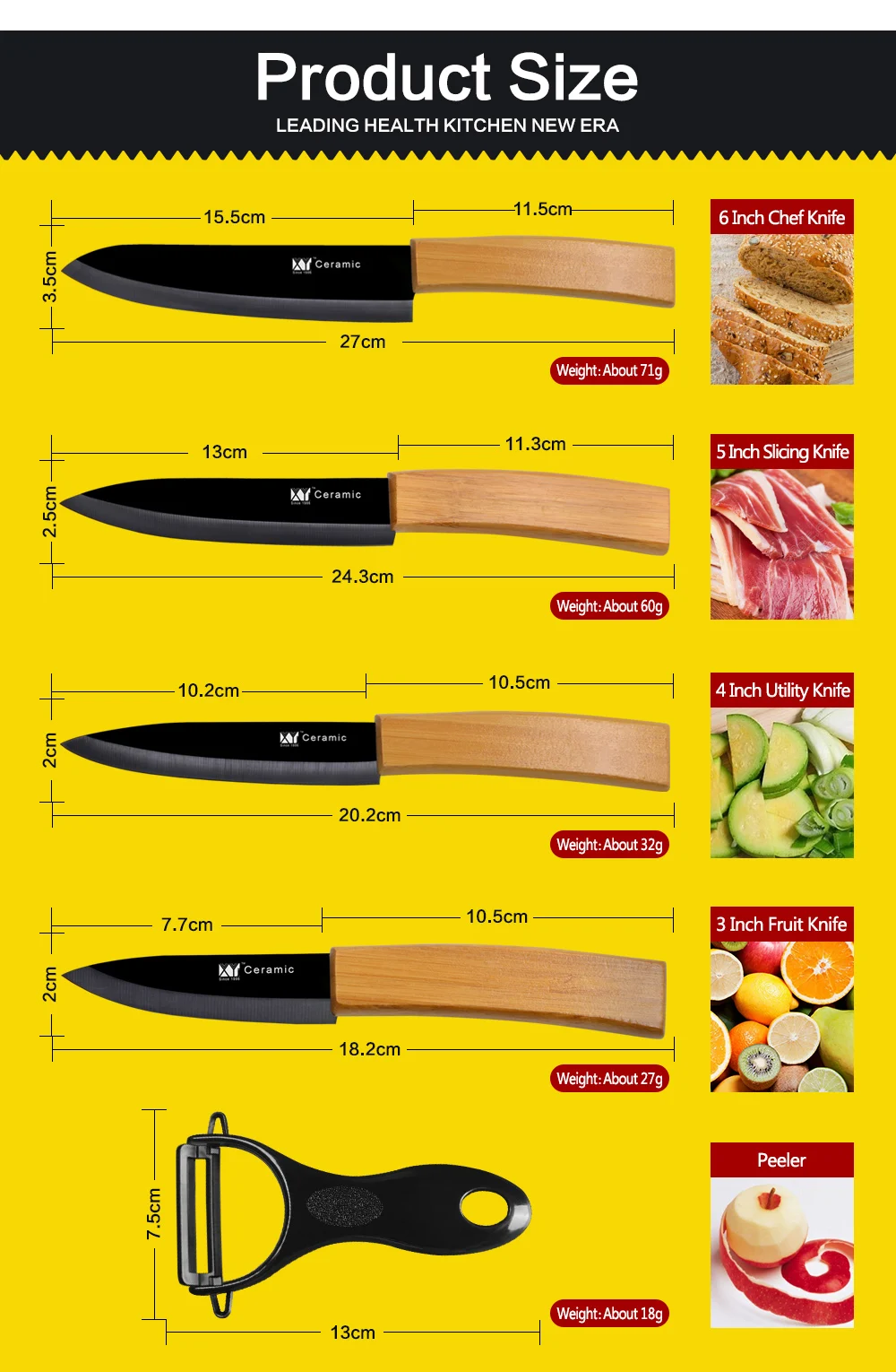 Packaging Includes:3" Paring 4" Utility 5"Slicing 6"Chef Knife