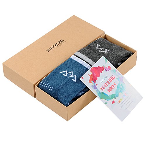 -. Brand : innotree -. Color : grey, dark green -. Department : Mens -. EAN : 0799422858725 -. Feature : MATERIAL: 45% merino wool, 40% nylon, 8% Polyester, 7% spandex. SIZE: L (Men < 10 US Size). Each pair socks weight 0.12lb/57g. / COMFORAT: Fine gauge knitting makes the hiking socks super comfortable, breathable and fast drying. Great elasticity and stay up-compressed top holds the sock securely on the calf. / PERFORMANCE: Half full thickness and cushioning along the bottom of the foot provide the perfect amount of support while a smooth, performance fit assures there's no slipping and no blisters. / FUNCTIONAL: Moisture wicking, anti-bacterial, ventilation, deodorant and smell free. Ideal for outdoor sports, camping, hiking, mountaineering, trekking, trail, running and climbing. / DURABILITY: 2 packs in a carton box, great for gift idea. Great durability, buy with confidence. -. IsAutographed : 0 -. IsMemorabilia : 0 -. Label : innotree -. Manufacturer : innotree -. Model : SS02M -. MPN : SS02M -. PackageQuantity : 2 -. PartNumber : SS02M -. ProductGroup : Sports -. ProductTypeName : OUTDOOR_RECREATION_PRODUCT -. Publisher : innotree -. Size : Medium -. Studio : innotree -. Title : 2 Pack Merino Wool Men's Hiking Socks, Half Full Thickness For Trekking -. UPC : 799422858725