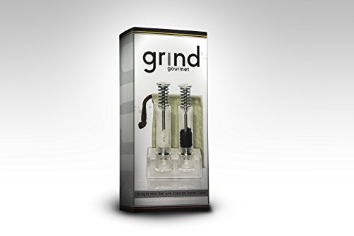 FORM AND FUNCTION EXQUISITELY PAIRED Grind Gourmet is the creator of the Original Pump & Grind salt and pepper grinder set. Similar looking mills on the market are evidence of Grind Gourmet’s success however Grind Gourmet mills are made with a superior quality stainless steel, the core is solid steel not plastic so pressure from grinding will not cause the mill to break. Once you use these mills you’ll never want to be without them. Enjoy our environmentally friendly pepper grinders.