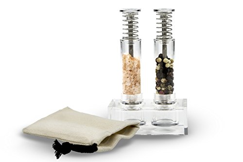 Travel Salt And Pepper Grinder Set, Grind Gourmet Original Pump & Grind Travel Gadgets, Spice Grinder, Pepper Mill, Small Salt Pepper Grinder, Free Pep Spice and Salt (Polycarbonate)