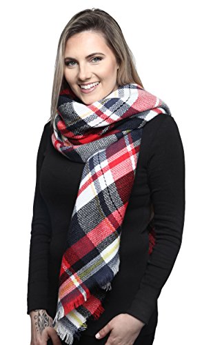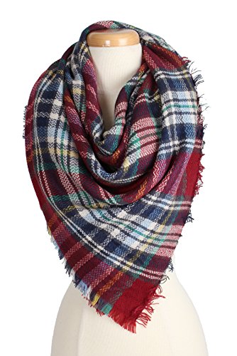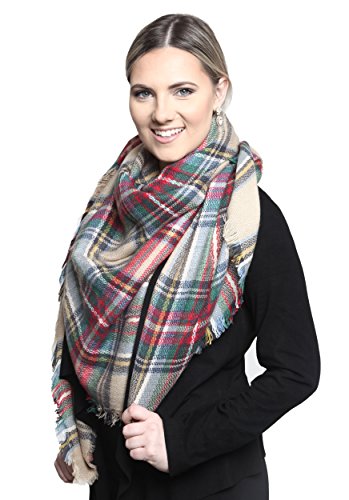 Womens Fall and Winter Blanket Square Scarf in Multi-color Plaid Pattern Design