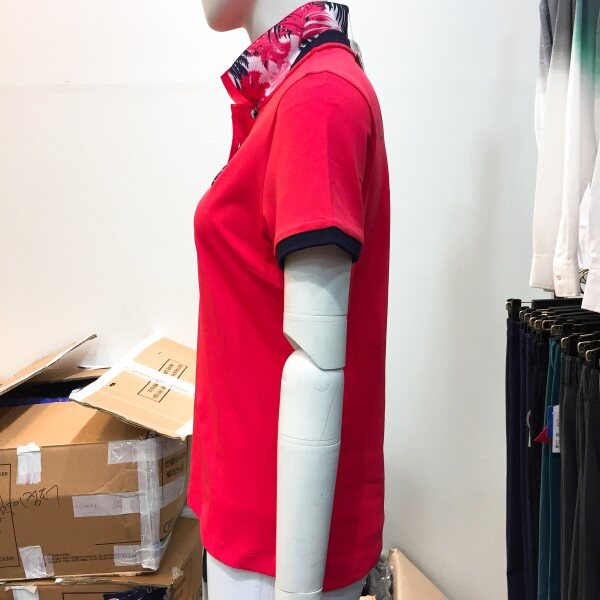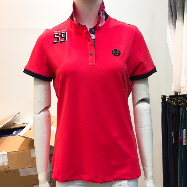 카라에 포인트가 들어간 멋스러운 코랄 반팔티 입니다