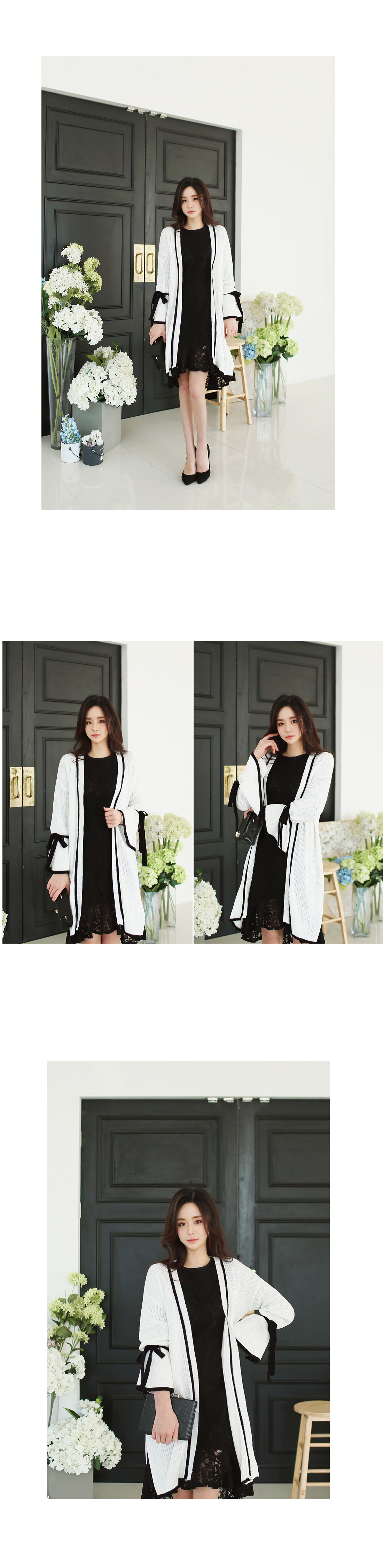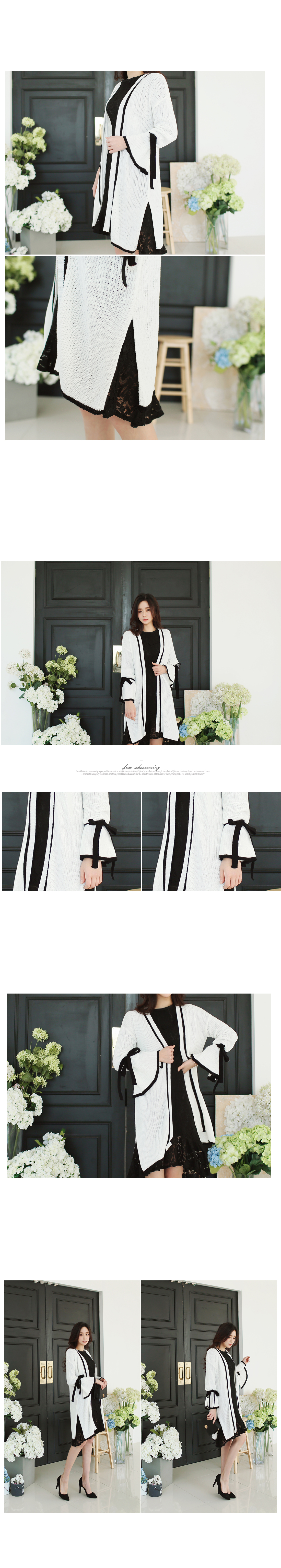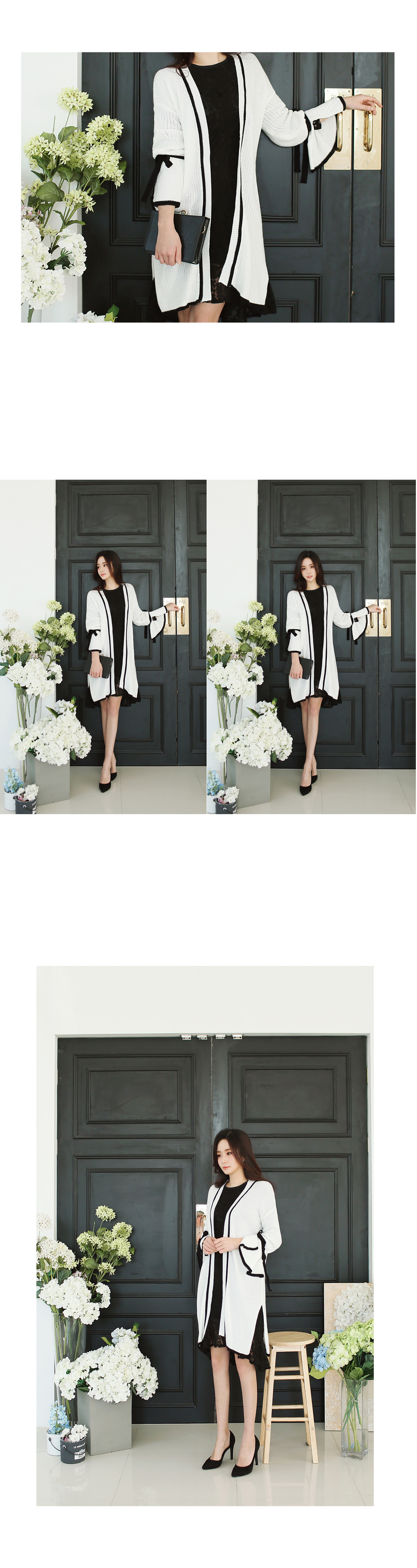 리본배색끈가디건