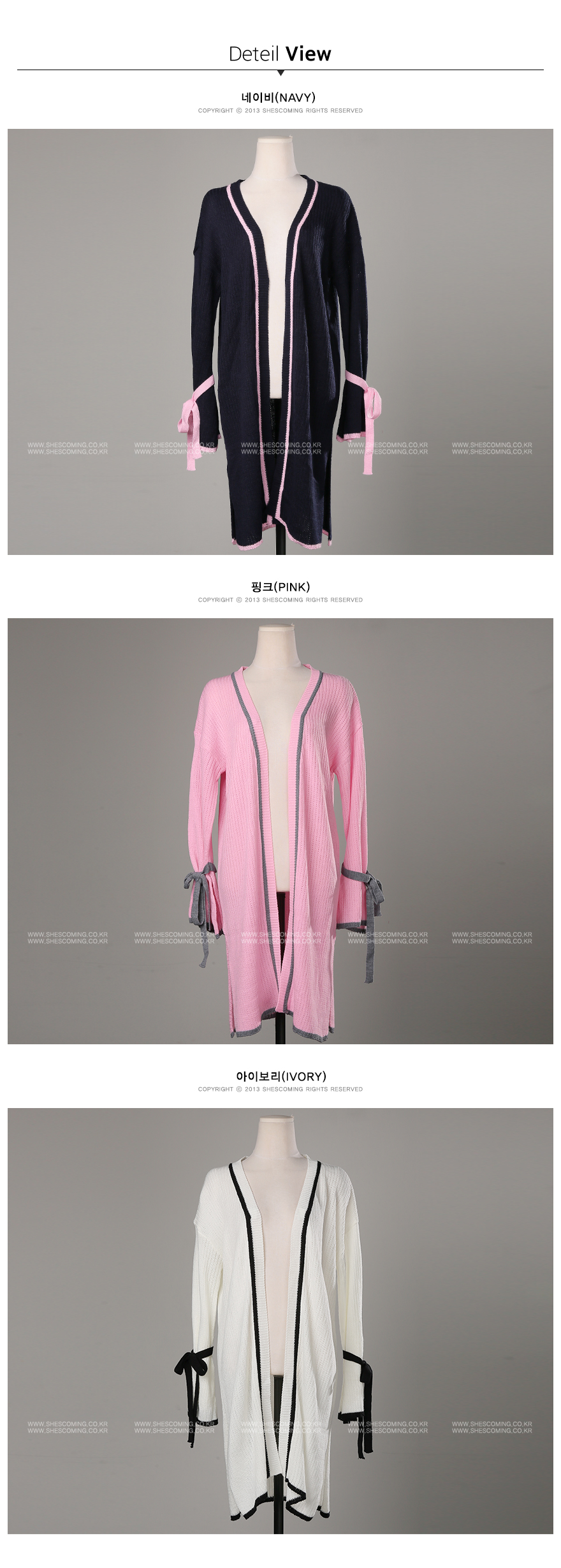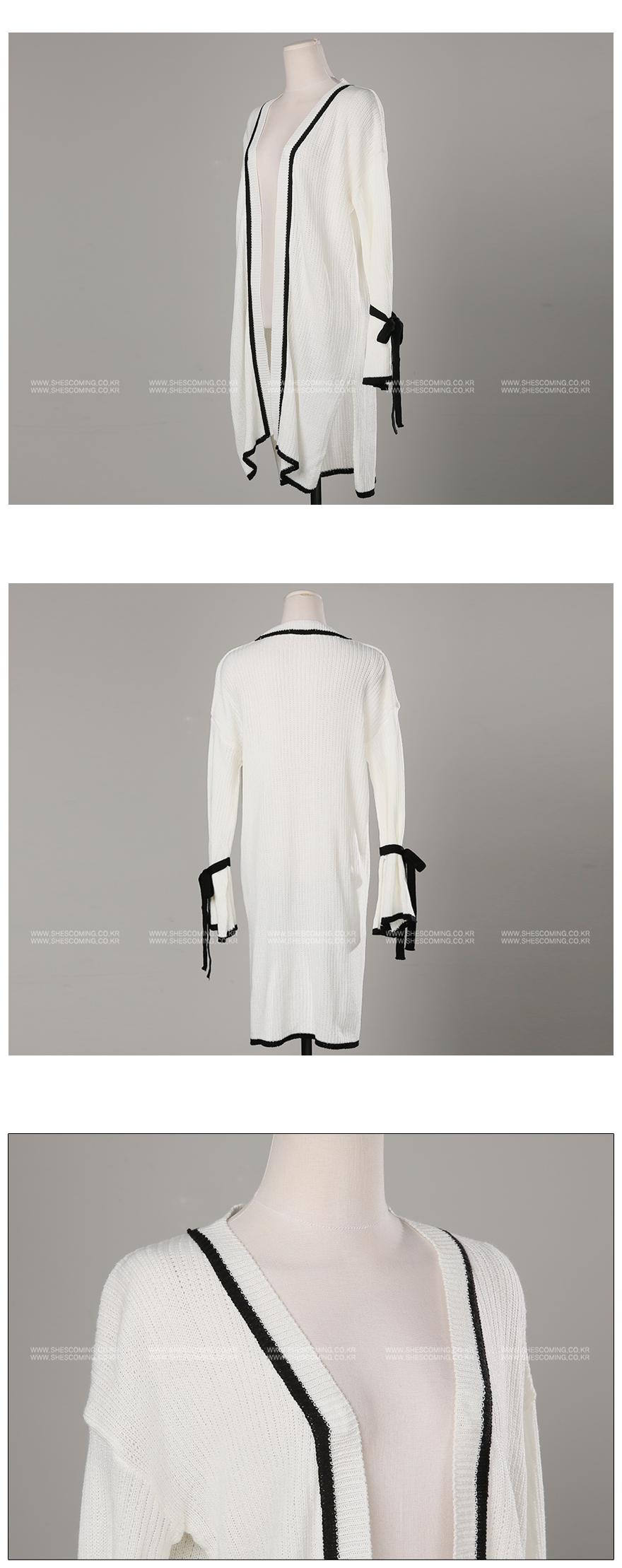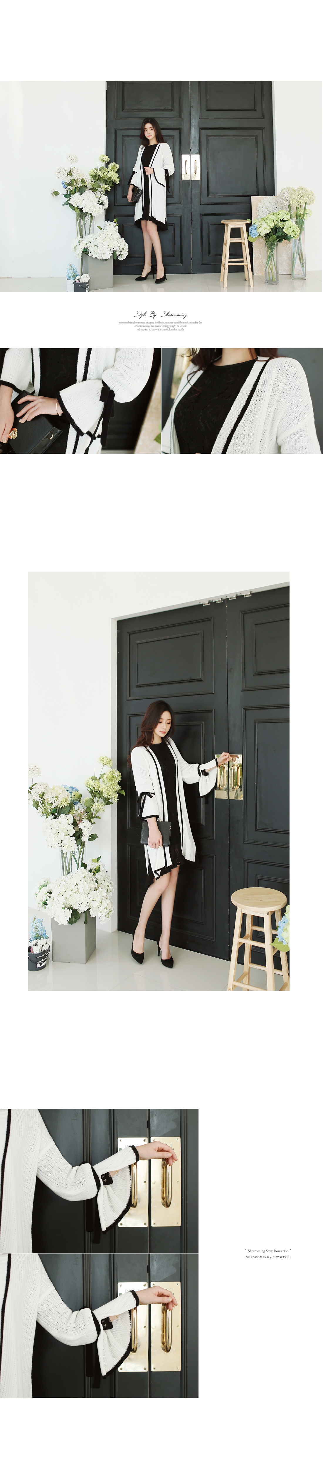 리본배색끈가디건