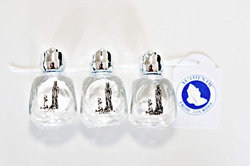 Lourdes Holy Water in 3 Glass Bottles - the "Precious" shape models - Filled with Authentic Lourdes Water from the Grotto