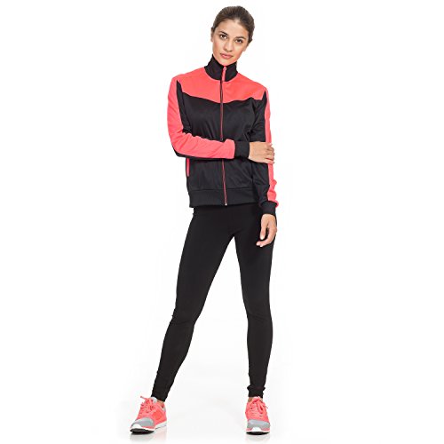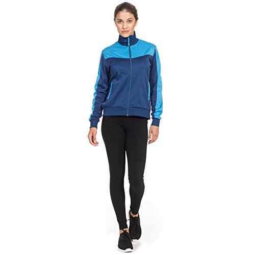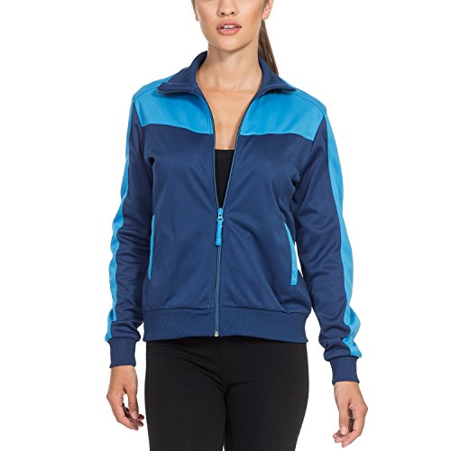 Intimuse retro Trainingsjacke fur Damen, Freiezitjacke ohne Kapuze mit Stehkragen in blau und schwarz / pink