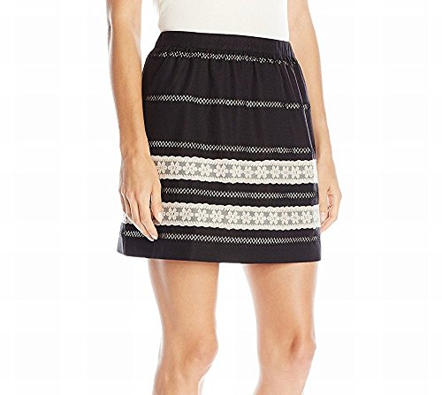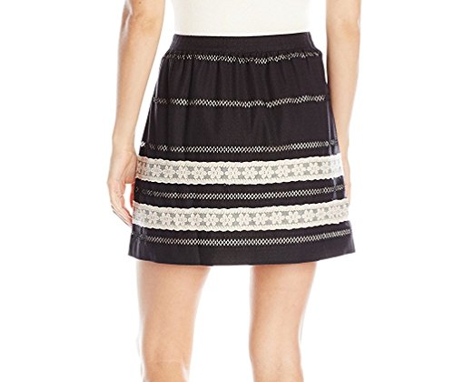 Product DescriptionBlack and oatmeal lace applique tiered mini skirt with princess seam pockets0