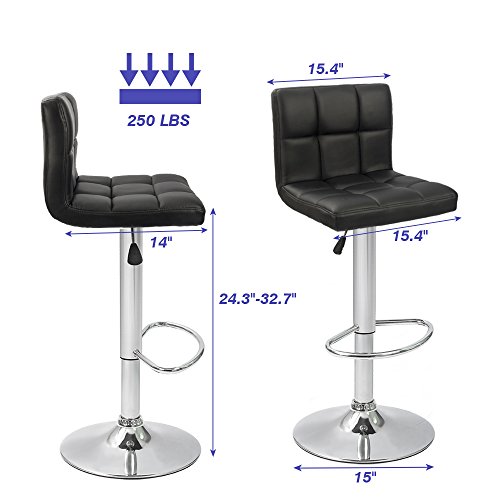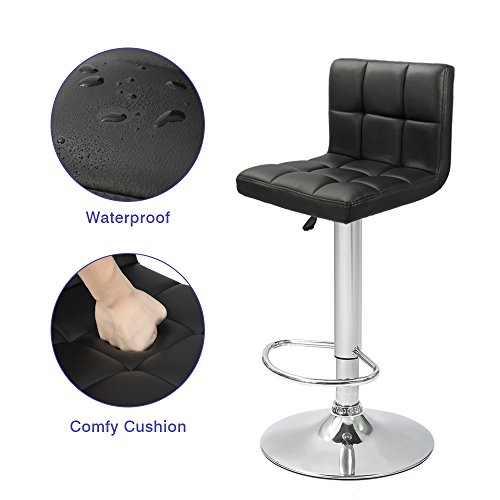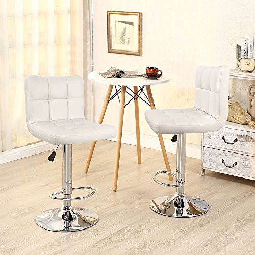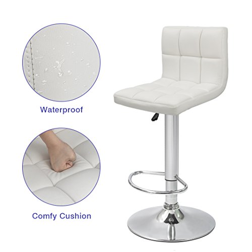 -. Brand : Devoko -. Feature : ★Modern and stylish design with PU leather cover bring you a comfortable sitting experience / ★With a built in 360° swivel function, give users the freedom of movement and able to carry conversations in any direction / ★Features a sturdy chromed base and pneumatic gas mechanism lift with footrest that Easily adjusts from counter to bar height / ★Load capacity: 250 LBS, Seating area Dimension: 16.5" x 15" (W X D), Back rest height: 12.8"; Adjustable seat height: 23.6"-31.5": Chrome base diameter 15" / ★Warranty: Within 30 days: Devoko is offering free replacement or refund for clients who not satisfy with any quality problems; Within 6 months: Free replacement for damaged/defective parts -. Label : Devoko -. Manufacturer : Devoko -. ProductGroup : Furniture -. ProductTypeName : HOME_FURNITURE_AND_DECOR -. Publisher : Devoko -. Studio : Devoko -. Title : Devoko White Bonded Leather Bar Stool Adjustable Hydraulic Barstools, Counter Swivel Barstool Set of 2