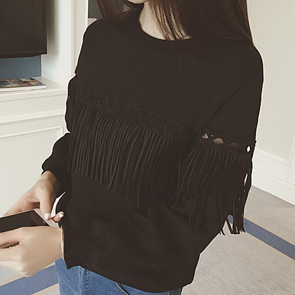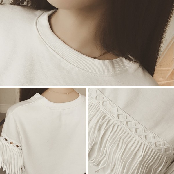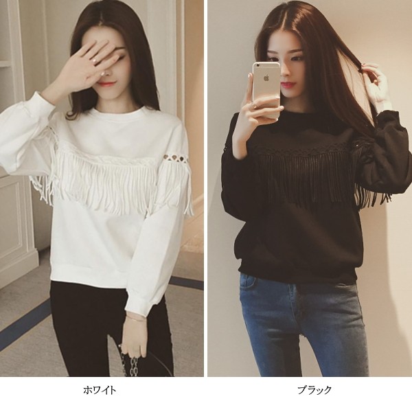 | 商品説明 | フリンジ付き 透け感 トップス トレーナー♪ 揺れるフリンジが大人可愛いトレーナーです。 腕のシースルーがポイントのデイリーに使いやすい1枚♪ |
