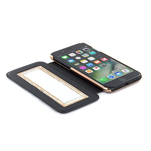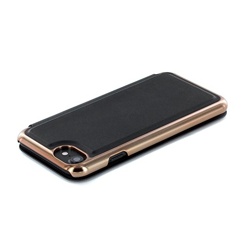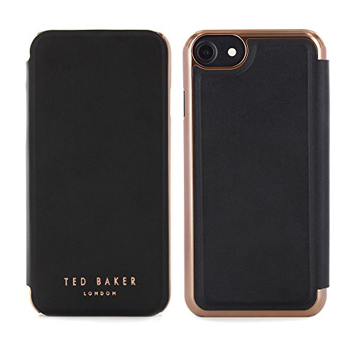 Title : Official TED BAKER Fashion Branded Mirror Folio Case for iPhone 7, Protective Wallet iPhone 7 Cover for Professional Women - SHANNON - Black / Rose Gold