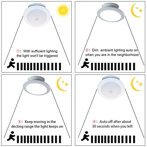 - Motion Activated:Built-in human body passive infrared (PIR) motion sensor light with automatic shut-off timer. Automatic Turn on and Shut off by human induction in the dark environment,Inductive range 4 meters inside